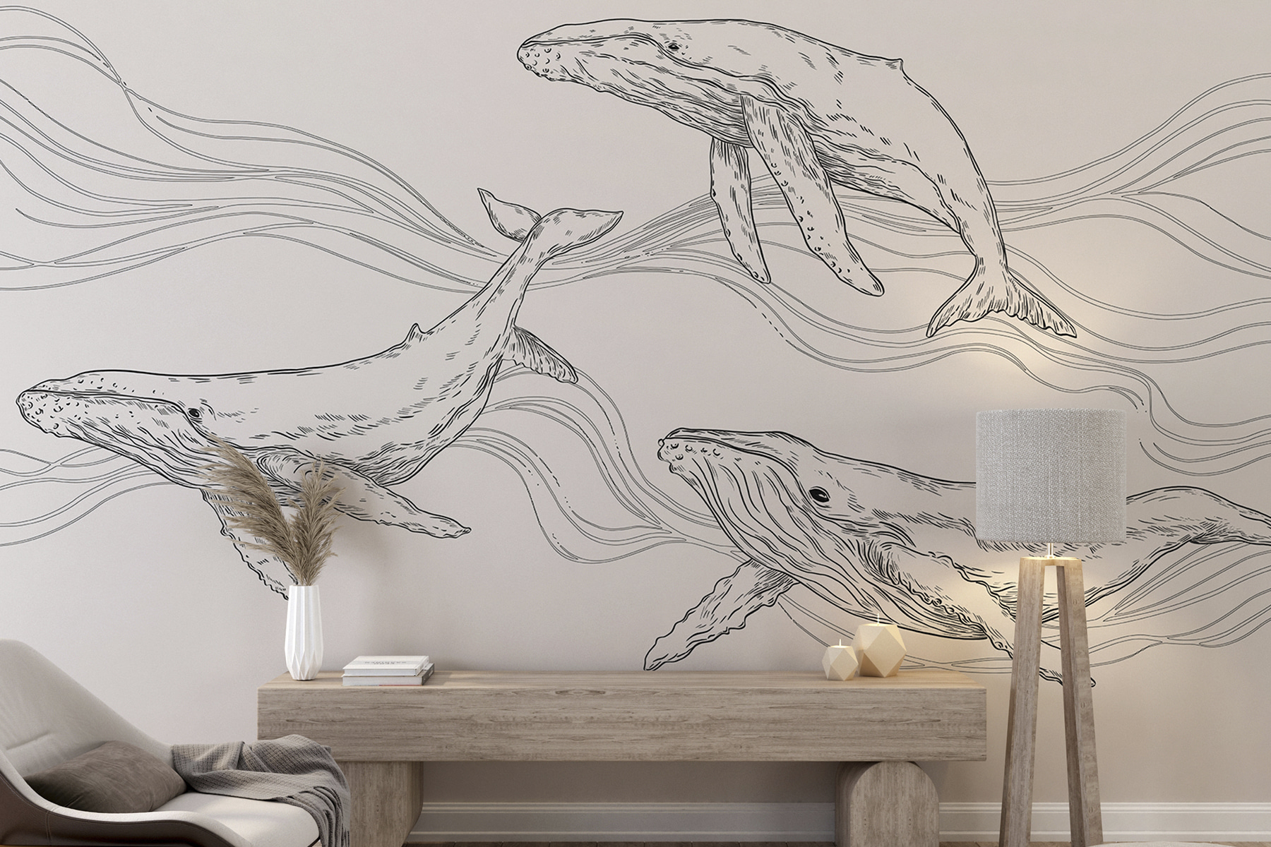 Pense nisso, depois de um longo dia, recostar-se e ser saudado por estes gentis gigantes. O seu movimento calmo e fluido quase o faz ouvir o suave murmúrio das ondas e sentir a refrescante brisa do mar, certo? Perfeito para dar um toque de tranquilidade a uma casa agitada ou para dar um pequeno impulso de imaginação a um quarto de criança. Para além disso, os seus convidados ficarão totalmente maravilhados – um início de conversa instantâneo. E sejamos honestos, quem não gostaria de partilhar o seu espaço com estas magníficas criaturas?