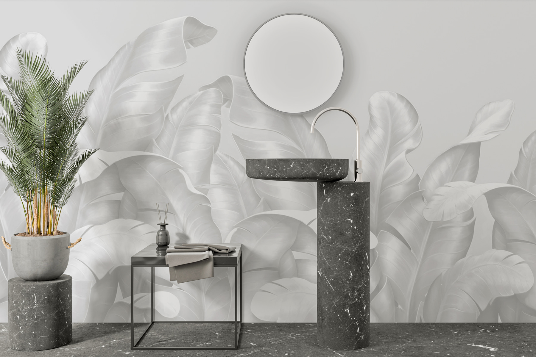 1 avaliação de Papel de parede A folhagem prateada cria uma textura elegante