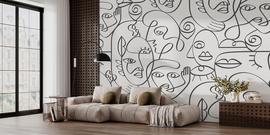 Transforme qualquer divisão numa fonte de conversa com este mural de parede peculiar que apresenta uma mistura divertida de rostos a preto e branco. É como entrar numa galeria de arte abstrata, mesmo em sua casa. Cada expressão parece contar a sua própria história, dando uma vibração energética que é difícil de ignorar. Imagine os convidados a parar para admirar este design único enquanto bebe o seu café, gabando-se casualmente das suas elegantes escolhas de decoração. Perfeito para uma sala de estar ou até mesmo para um recanto acolhedor, traz um toque divertido e artístico que parece fresco e convidativo. Deixe que esses rostos suscitem algumas conversas interessantes!