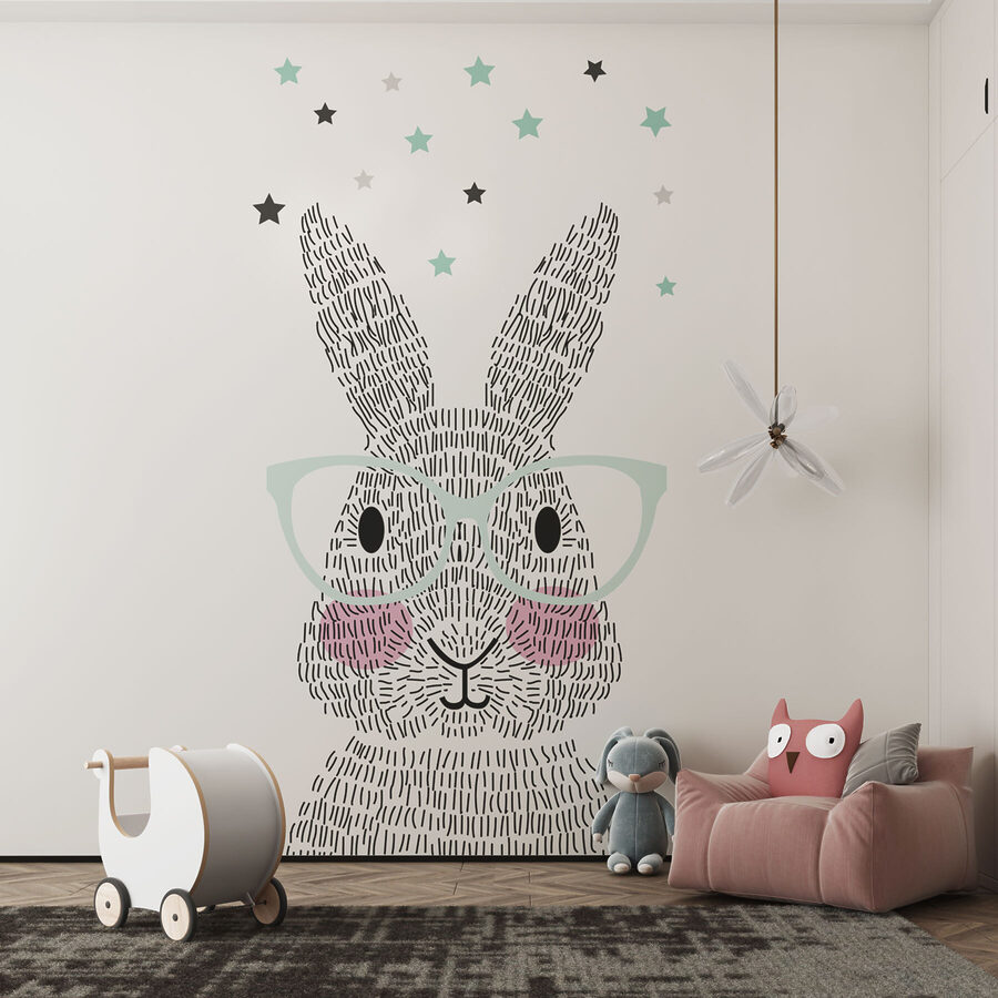 Já pensaste que um coelhinho podia usar óculos? Bem, diz olá a este rapazinho cheio de estilo! “Papel de parede Bunny with Glasses under Stars” é a mistura certa de peculiaridade e fofura para iluminar qualquer sala. Imagine-o num quarto de criança, numa sala de jogos ou num espaço de vida peculiar – vai despertar alegria e talvez uma ou duas gargalhadas!