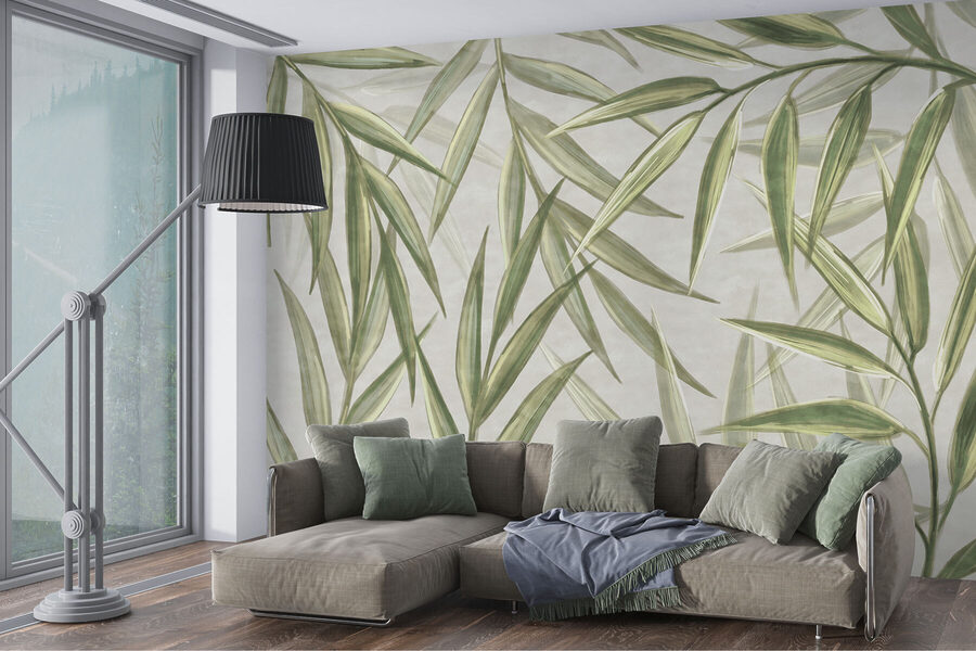 Pense em transformar o seu espaço com uma pitada de vibrações exuberantes e tropicais – “Verdant Leaves on Pale Background” é a coisa certa! Este mural de parede convida a beleza serena da natureza para dentro de casa, com os seus verdes suaves e fundo suave, oferecendo uma sensação de selva minimalista sem dominar a divisão. Imagine acordar com isto todas as manhãs; parece que está num retiro tranquilo e arejado. Além disso, enquadra-se em muitos estilos de decoração – selva, tropical, natureza, etc. Perfeito para um toque fresco e calmante.