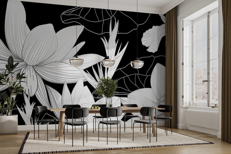 Muito bem, imagine o seguinte: está sentado no seu quarto, mas ainda não se sente como “você”. Talvez precise de um toque final para se sentir especial. Entre no elegante mural floral a preto e branco – um deslumbrante revestimento de parede que acrescentará sofisticação e estilo a qualquer espaço. Quer dizer, basta olhar para aquelas flores! Não são flores comuns; têm aquele toque artístico que diz: “esta sala? É algo diferente”.