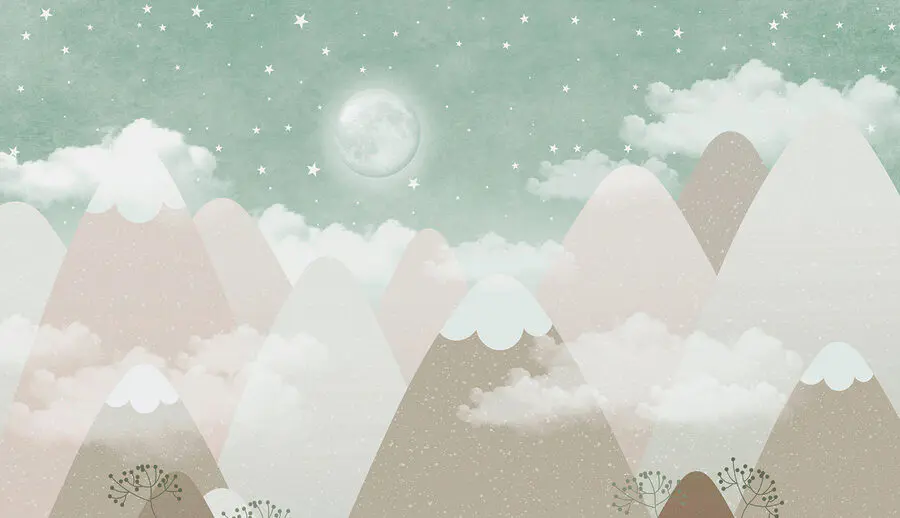 As cores suaves e as formas extravagantes das montanhas proporcionam um ambiente calmo. Pode facilmente perder-se nesta cena serena, onde a lua paira como um guardião gentil que supervisiona o seu sono. As estrelas – oh, as estrelas! Elas cintilam suavemente, provocando pequenos momentos de admiração. A sério, imagine a hora de contar uma história ou a hora de dormir ao lado deste cenário encantador!