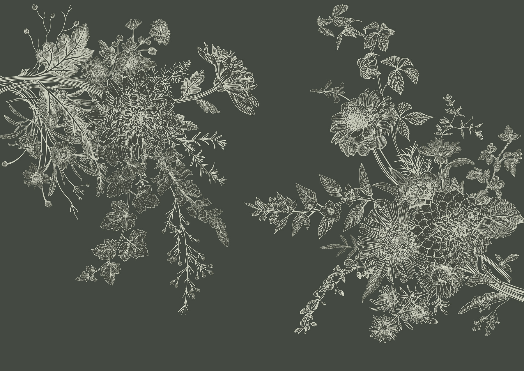 Papel de parede Esboço floral elegante sobre um fundo escuro. (REF: w00381)