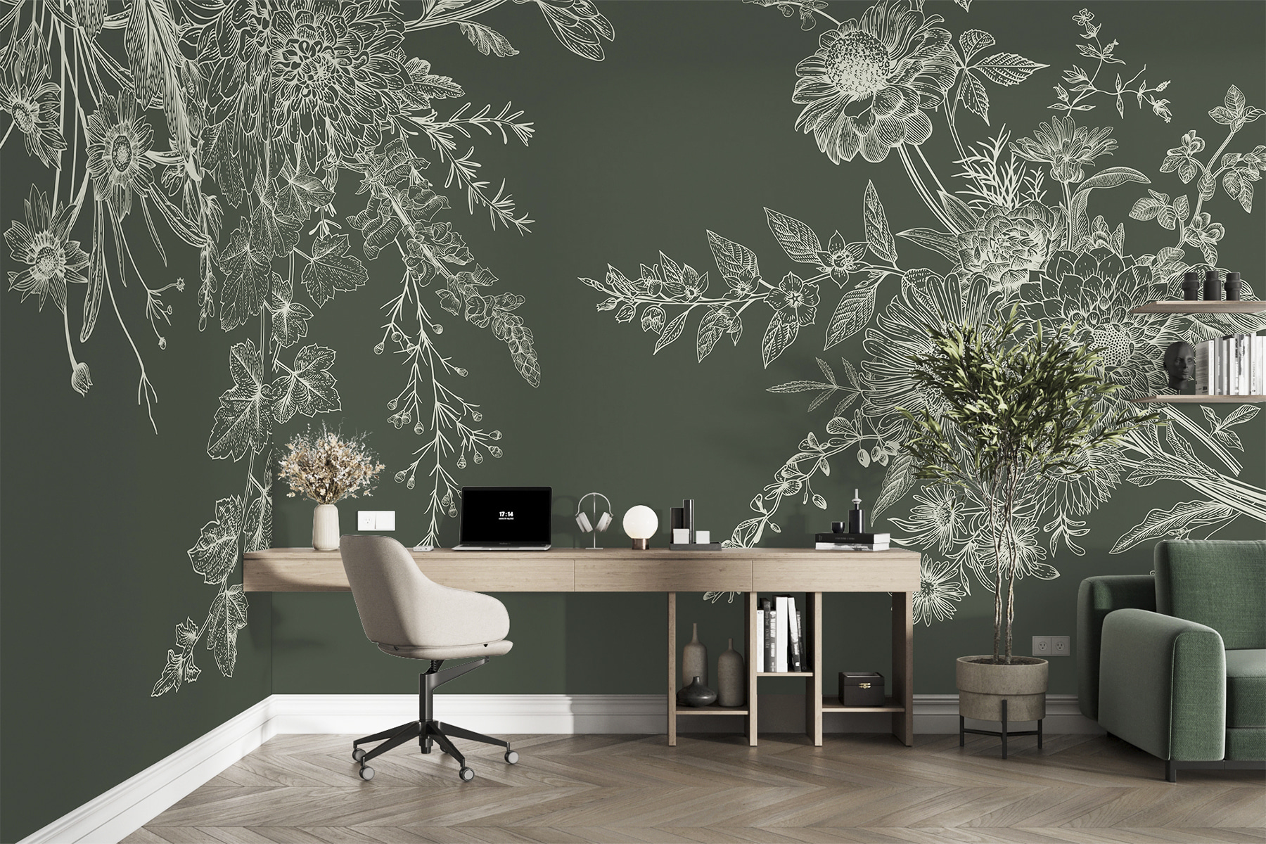 Transforme uma parede simples numa obra-prima botânica com este elegante mural floral. Imagine esboços intrincados de flores a dançar contra um fundo profundo e rico – é como trazer um jardim para dentro de casa sem ter de regar nada! Imagine-se a acordar num quarto que parece um oásis criativo, que desperta inspiração e calma ao mesmo tempo. É perfeito para aquele recanto de leitura acolhedor ou para um escritório com estilo. Os amigos vão ficar maravilhados com o seu gosto único. Além disso, quem consegue resistir a estes pormenores caprichosos? Não se trata apenas de decoração; é uma experiência que sussurra os segredos da natureza de cada vez que se olha para ela.
