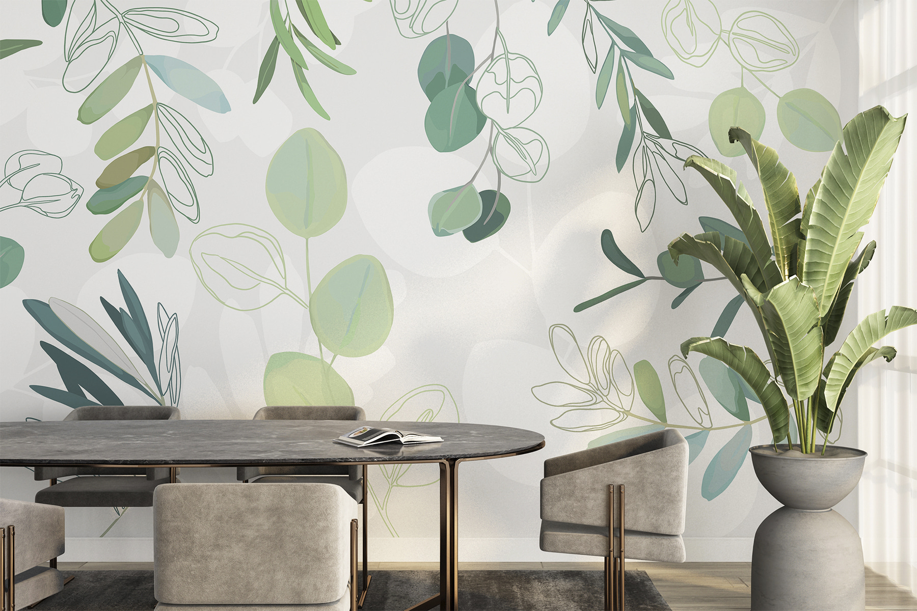 Transforme o seu espaço num refúgio sereno com este encantador mural de folhas verdes sobre um fundo branco calmante. Imagine entrar numa sala que parece um retiro florestal arejado. É perfeito para quem quer fugir à azáfama do dia a dia e relaxar num recanto chique da natureza – sem os insectos, claro. Os verdes suaves oferecem um toque de cor fresca, enquanto o toque artístico traz uma vibração chique. Quer se trate de um canto de leitura acolhedor ou de uma área de refeições animada, este mural cria uma atmosfera convidativa pela qual é fácil apaixonar-se. Além disso, os convidados vão certamente perguntar onde é que encontrou uma peça tão encantadora. Não é apenas decoração; é um impulsionador de humor.