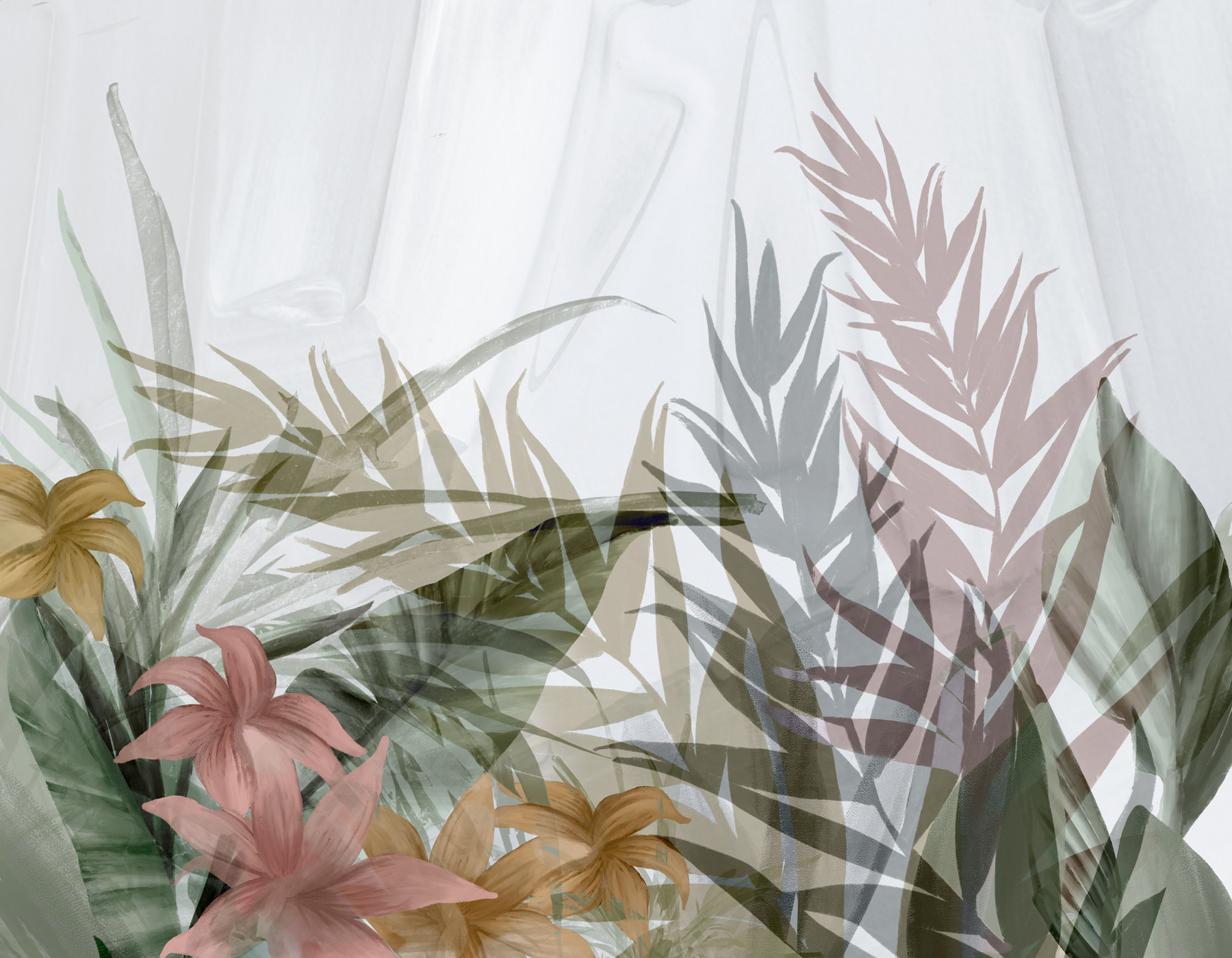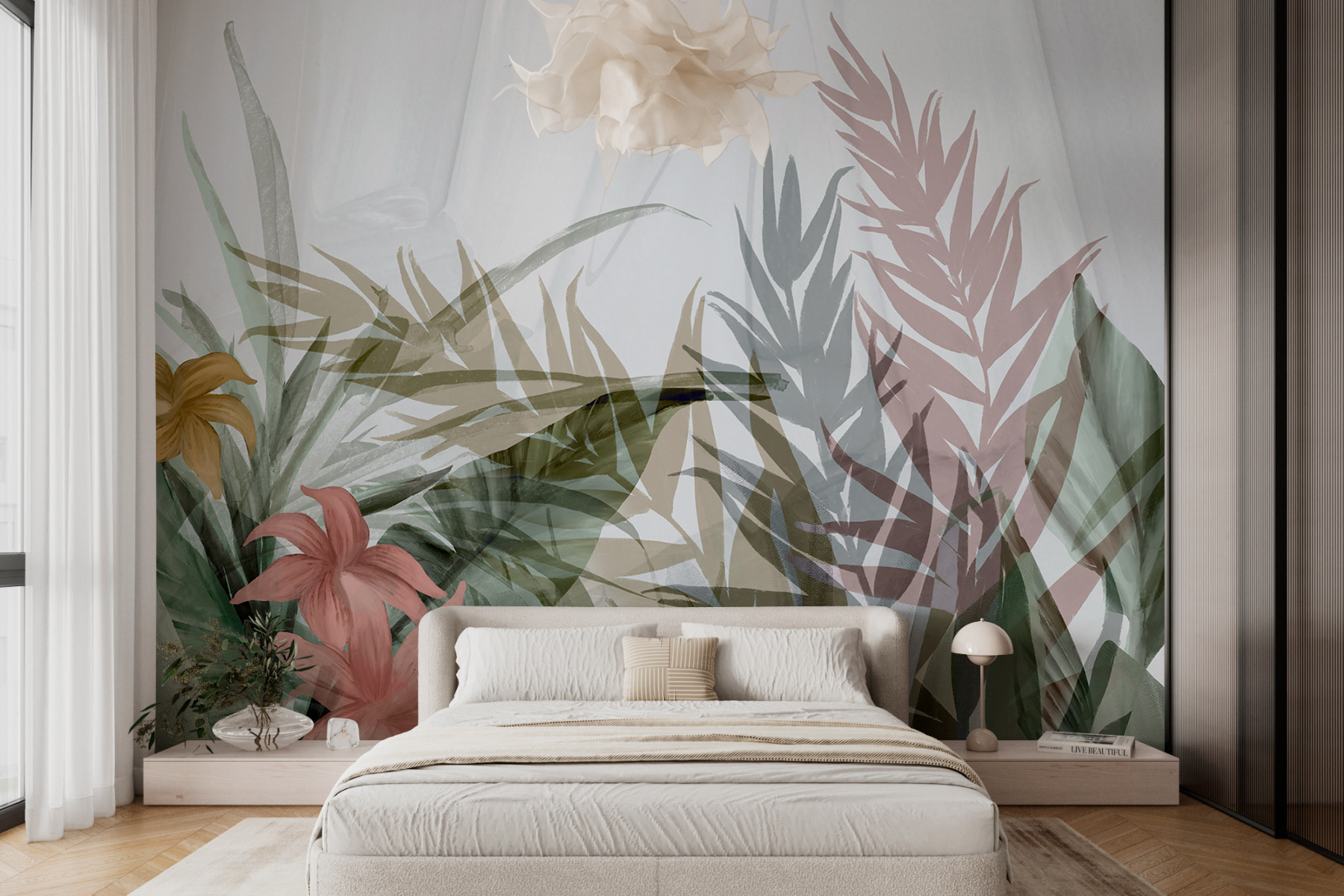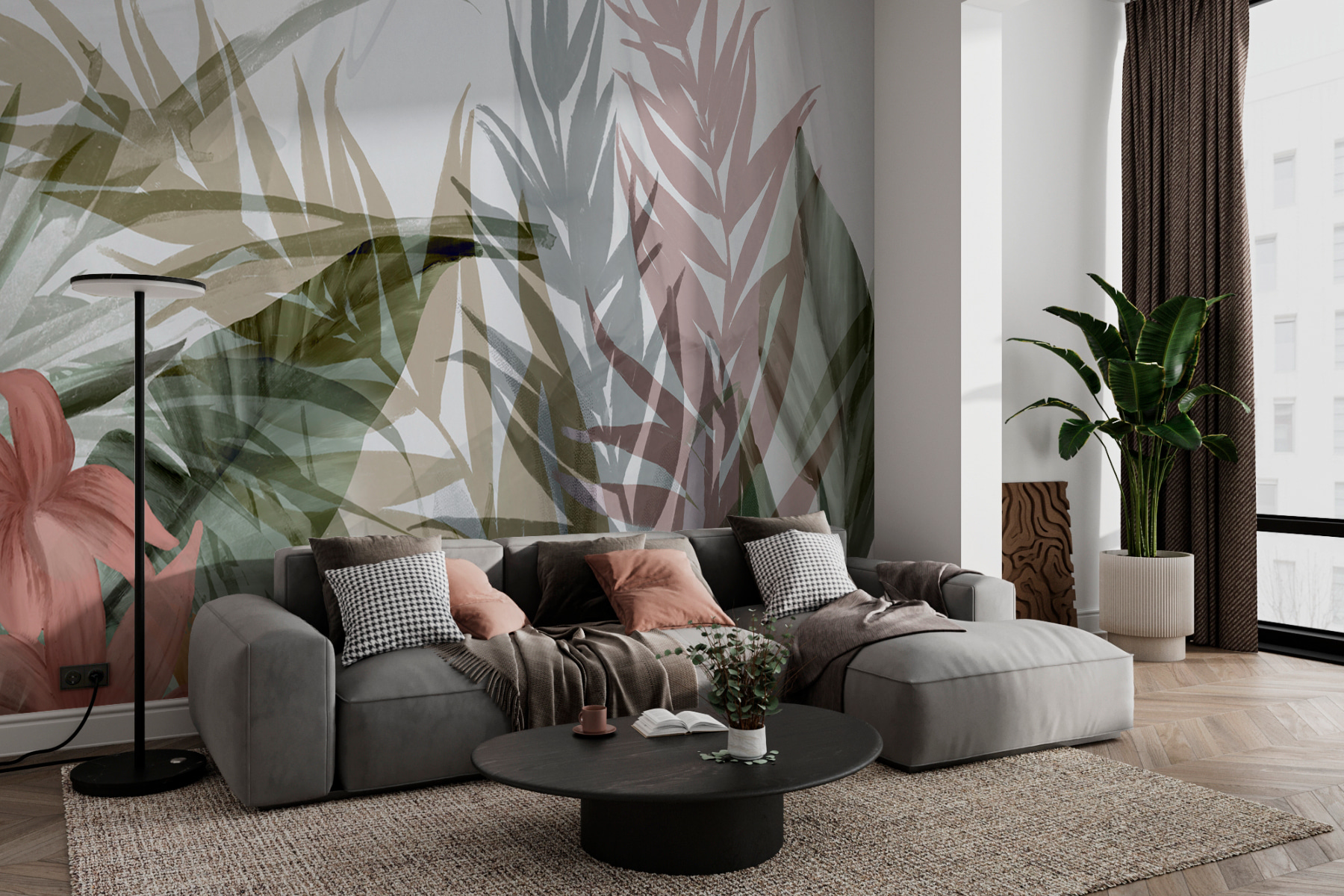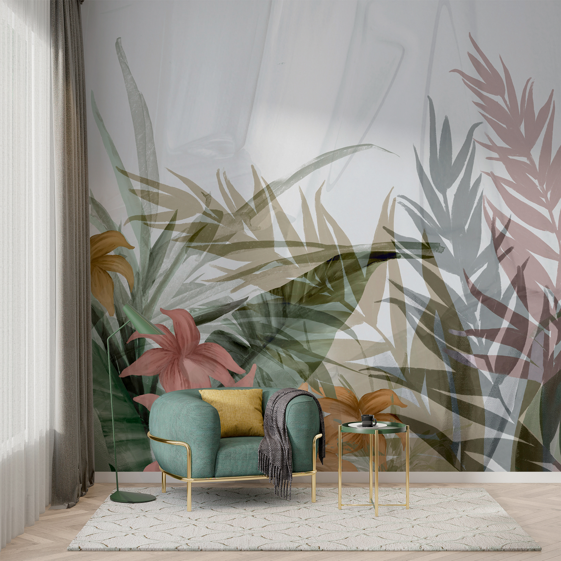 Imagine isto: um mural que transforma a sua parede num oásis sereno. Apresentamos o nosso Desenho Floral Abstrato com Folhas em Camadas. É como umas mini-férias sempre que entra na divisão. Aquelas camadas suaves de folhas e flores – quase como uma brisa suave a passar por uma floresta tropical. As cores suaves misturam-se numa dança relaxante, fazendo com que qualquer espaço se sinta fresco e tranquilo.