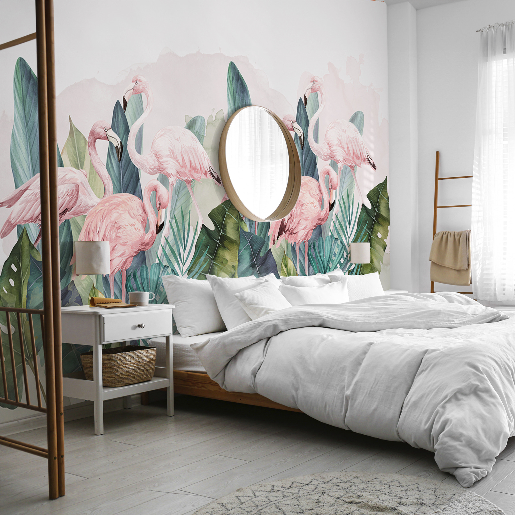 Imagine acordar com um vibrante paraíso de flamingos mesmo na sua parede! Este mural, apropriadamente designado “Grupo de Flamingos e Folhas Cor-de-Rosa”, junta os tons suaves e corados dos flamingos a uma vegetação luxuriante – perfeito para dar um toque tropical a qualquer espaço. Quer esteja a transformar um canto de um quarto sem graça num santuário animado ou a animar a sua sala de estar com algumas vibrações exóticas, este mural tem tudo o que precisa. Os rosas saltam à vista, não é? É como se estes flamingos estivessem prontos a exibir-se a qualquer momento. Imagine a sua manhã: café na mão, a desfrutar da atmosfera serena e alegre que estes flamingos trazem. Eles sussurram “apenas boas vibrações” e deixam uma impressão solarenga e calorosa, elevando instantaneamente qualquer divisão da sua casa. Um verdadeiro estímulo ao humor, certo?
