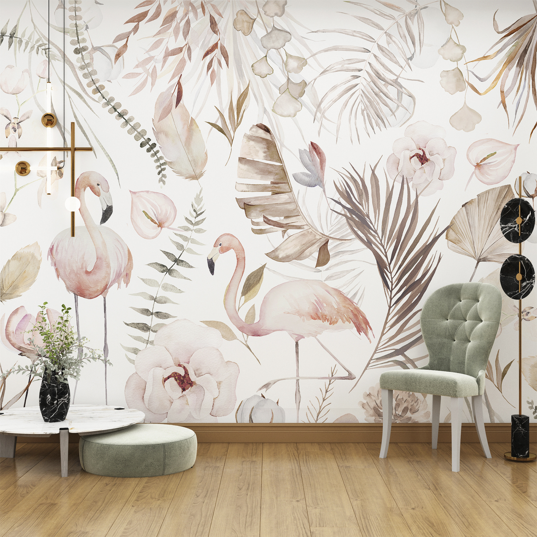 Imagine dar ao seu espaço uma dose de paraíso, com “Flamingos Dance Amidst Botanical Dreams”. Este mural transporta-o para uma selva de sonho onde elegantes flamingos se encontram com um exuberante jardim de flora exótica. Perfeito para aqueles que adoram um toque dos trópicos – é como umas mini-férias na sua parede. As cores suaves e o design caprichoso conferem-lhe um ambiente sereno, mas divertido. Pode até dar por si a sonhar acordado com tardes preguiçosas e ensolaradas na praia. A sério, é de roubar a cena. Ideal para salas de estar, quartos ou qualquer recanto que precise de um toque de vida e cor. Confie em mim, as suas paredes vão agradecer-lhe!