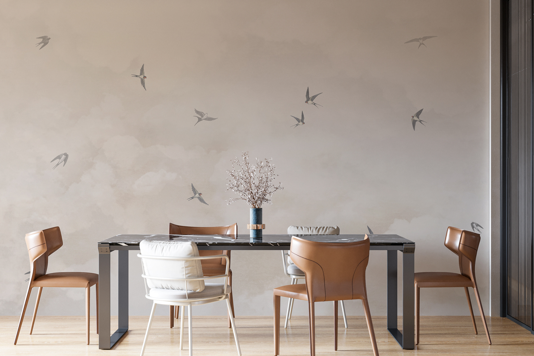 Imagine acordar todos os dias com um céu cheio de pássaros despreocupados, a voar e a deslizar por entre nuvens suaves e sonhadoras. É exatamente isso que este mural “Birds Flying in the Sky” traz para o seu espaço. É como ter uma fatia de serenidade mesmo ali na sua parede. Pássaros a voar aqui e ali, nuvens preguiçosamente à deriva – é calmante, mas também um toque lúdico. Combina na perfeição com salas de estar, infantários ou qualquer canto que precise de uma pitada de prazer aéreo. Para alguém que adora a natureza e uma pitada de capricho, este mural é uma pequena fuga diária sem sair de casa. Dá vontade de pegar numa chávena de chá e simplesmente… estar.