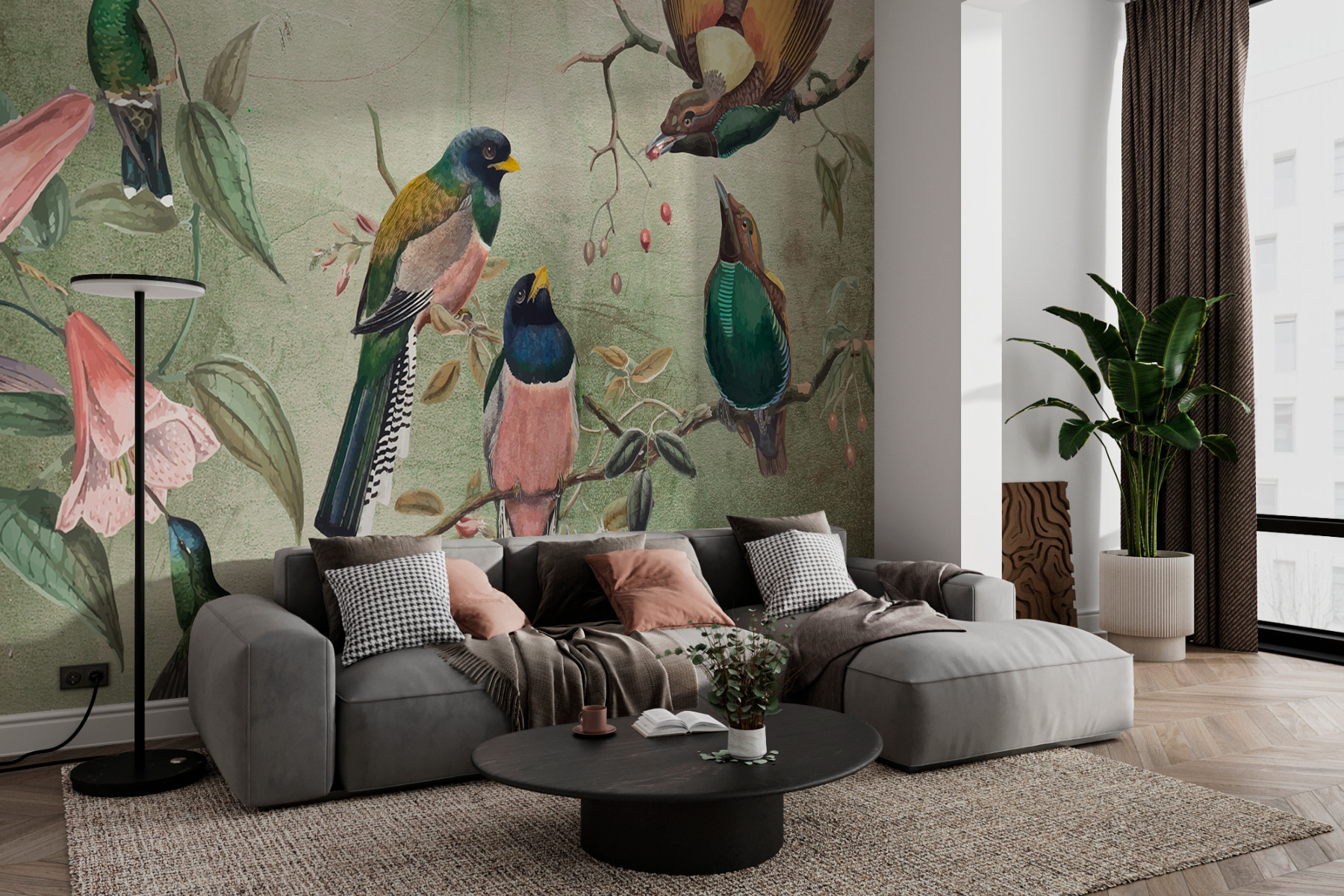Imagine acordar com uma alegre serenata de pássaros coloridos empoleirados em ramos – sem nunca ter de sair da sua cama acolhedora! Este mural “Grupo de Pássaros num Ramo” é como ter uma pequena fatia da natureza mesmo na sua sala de estar. A bela mistura de pássaros e flores dá esta vibração tranquila, mas animada, que só o faz querer servir uma chávena de chá e sentar-se para um feitiço. Perfeito para os amantes de pássaros ou para qualquer pessoa que queira um toque do ar livre dentro da sua casa. Cada olhar para este mural – um momento de puro deleite. Bónus: não precisa de se preocupar em alimentar estes amigos de penas!