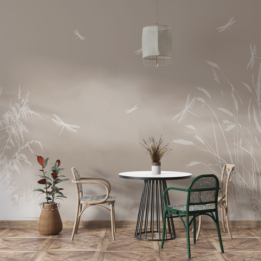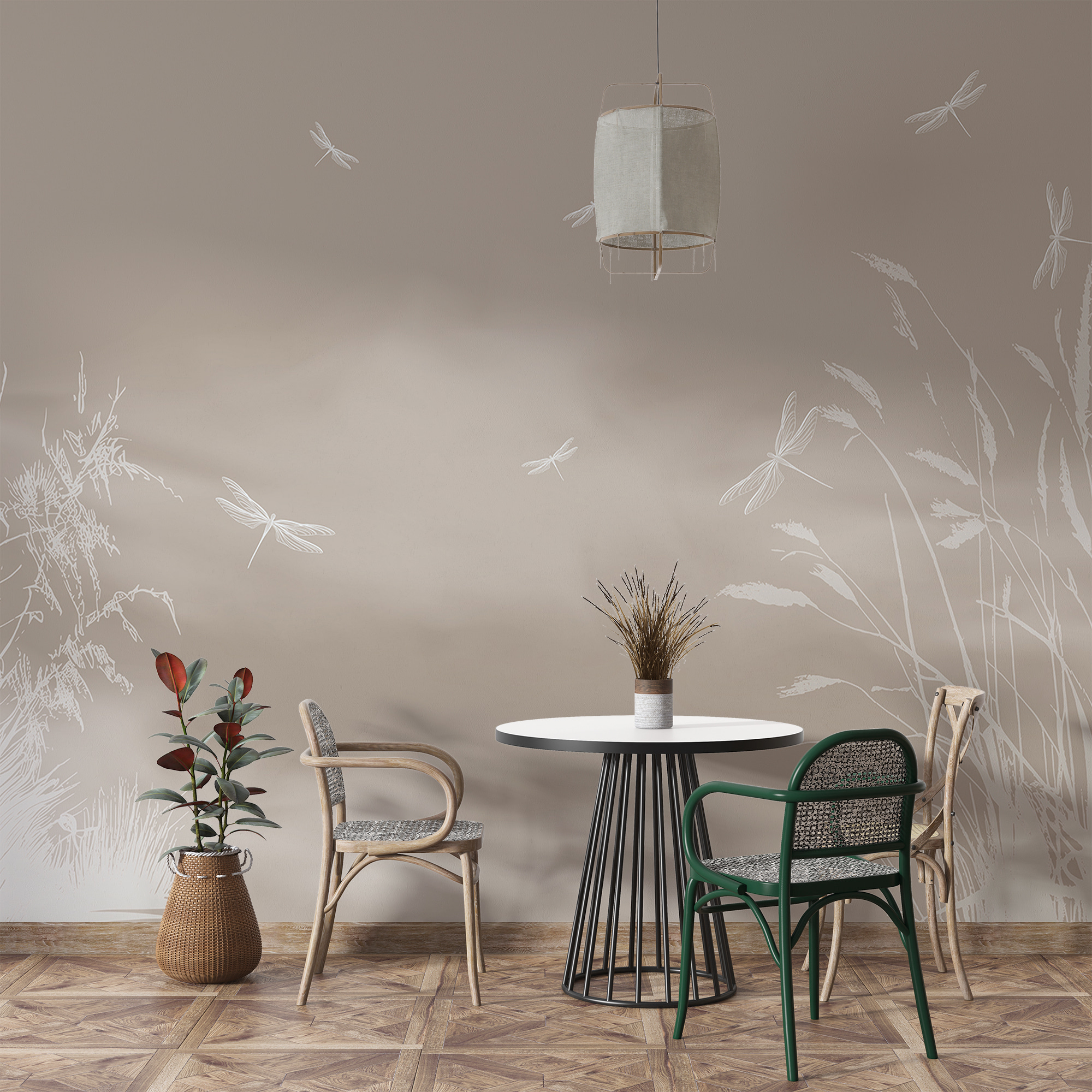 Transforme o seu espaço num santuário sereno com o mural de parede de uma libélula branca a flutuar graciosamente entre ervas suaves. É como trazer um pedaço da natureza para dentro de sua casa, convidando a vibrações calmas por todo o lado. Imagine bebericar o café da manhã e deixar o seu olhar vaguear sobre a suave obra de arte, sentindo o stress do dia a derreter-se.