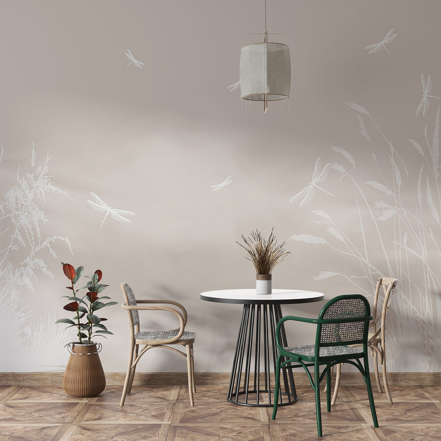 Precisa de algo sonhador para a sua parede? Veja este mural – tem estas delicadas libélulas brancas a esvoaçar neste fundo suave e terroso. É como uma tarde suave num campo, com as libélulas a dançar numa leve brisa. Imagine-se sentado na sua cadeira preferida, com uma chávena de chá na mão, totalmente zen. Tem esta vibração calmante que dá vontade de respirar fundo e relaxar. Perfeito para dar um toque de natureza e tranquilidade ao seu espaço! Confie em mim, vai querer perder-se nela sempre que passar por ela.