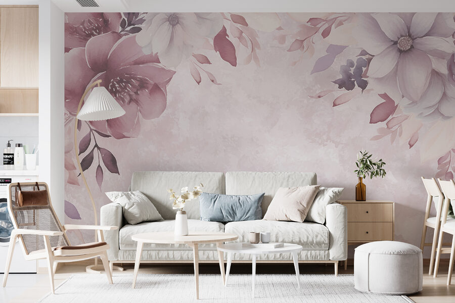 Veja este deslumbrante mural – “Elegância floral em tons pastel em exposição”. Perfeito se gosta de um toque de capricho na sua decoração. Imagine entrar numa sala cheia de peónias de aguarela de sonho e flores suaves em tons suaves de rosa e roxo. É como entrar num conto de fadas, não é?