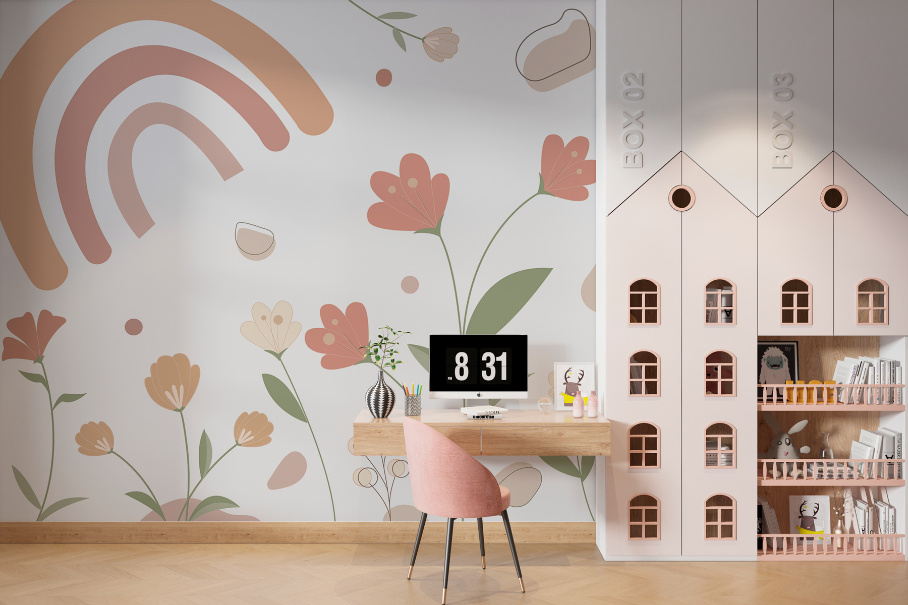 Alguma vez sonhou em ter uma fatia de beleza tranquila na sua sala de estar? Sim, nós também. Este mural de parede “Abstract Pastel Flowers and Rainbow” não é apenas uma obra de arte – é como trazer um jardim sereno e uma pitada de capricho para dentro de casa. Imagine entrar numa sala e ser recebido por flores suaves em tons suaves, com um bonito arco-íris para animar as coisas. Perfeitamente em tons pastel, este design transmite calma e alegria. Ótimo para um recanto aconchegante ou para fazer uma declaração em seu corredor – apenas sua dose diária de vibrações bonitas. 🌸🌈