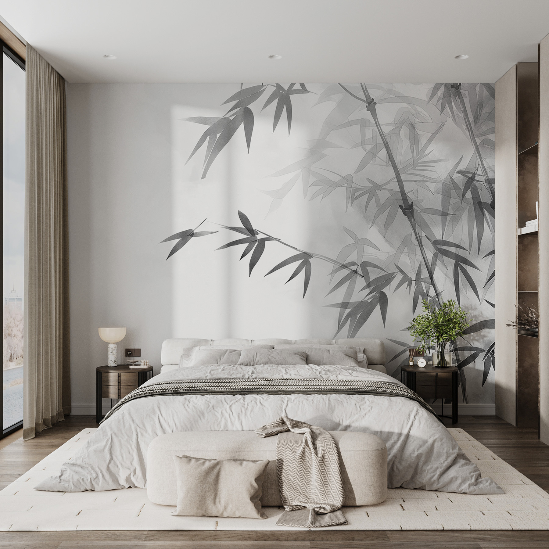 Este mural, “Bamboo Leaves on a Branch”, sussurra tranquilidade diretamente para o seu espaço de vida. Imagine olhar para a sua parede e, sem mais nem menos, estar rodeado pelo suave farfalhar das folhas num bosque de bambu escondido. É como umas mini-férias sem fazer as malas. Perfeito para dar um toque zen ao seu dia agitado. Os amigos podem entrar e dizer: “Uau, quando é que a sua casa se transformou num spa?”, porque tem aquele ambiente convidativo. Esta peça não se limita a decorar; transforma-se, oferecendo uma fuga serena a cada olhar.