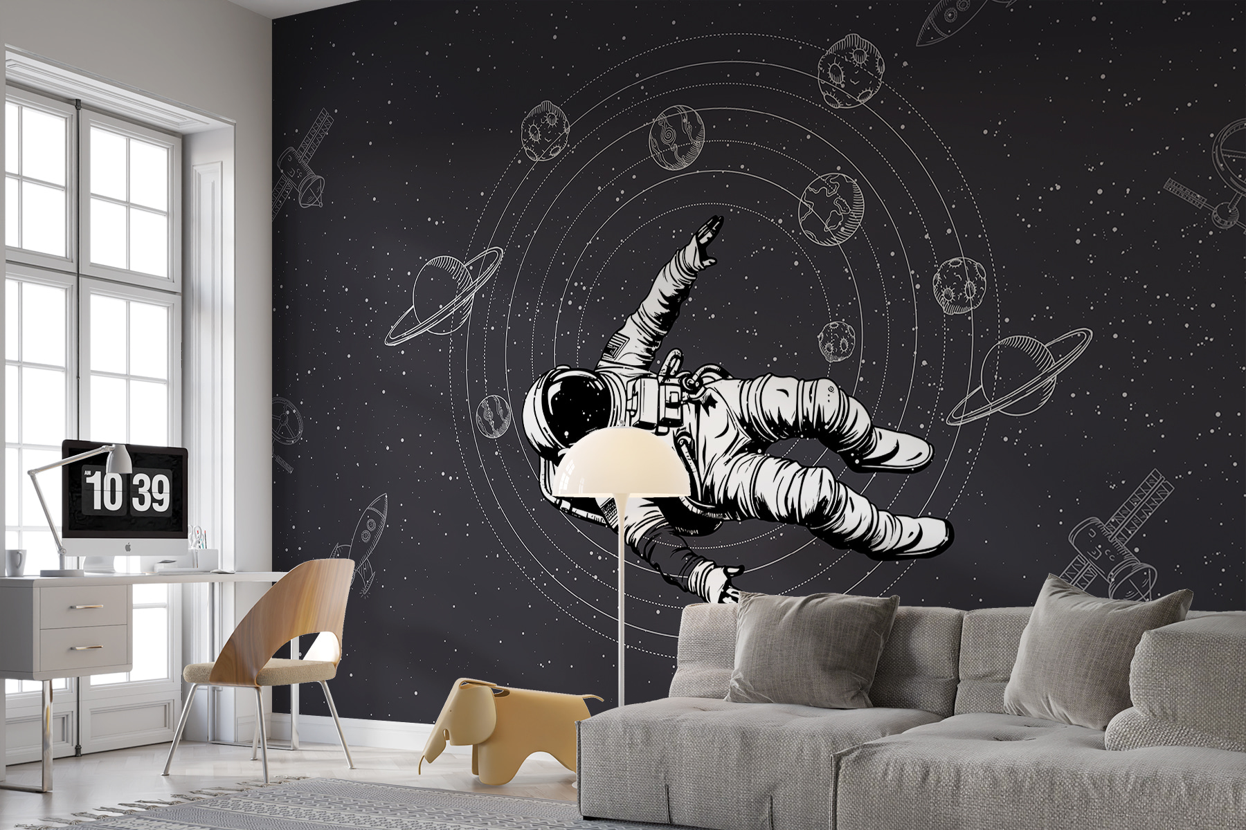 Alguma vez sonhou em flutuar entre as estrelas? Conheça o mural de parede “Astronauta flutuando no espaço”! Esta beleza cósmica pertence a qualquer divisão onde a imaginação corre solta – como o quarto de uma criança ou o seu escritório peculiar em casa. Imagine isto: você, a beber café, sentindo-se como se estivesse a flutuar no espaço. O design simples a preto e branco mistura sofisticação com um toque de capricho. É como se o universo abraçasse a sua parede. Acrescenta profundidade e aventura a qualquer espaço, tornando cada olhar numa mini odisseia espacial. Pendure-a e deixe que os seus pensamentos orbitem as possibilidades!