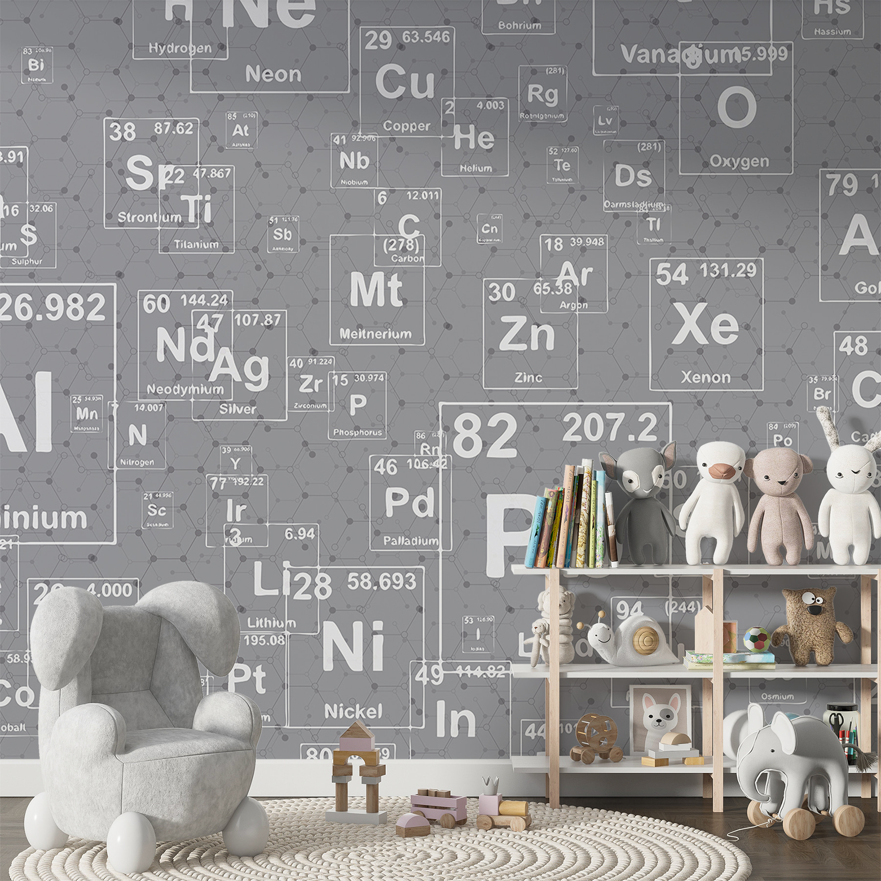 Alguma vez sentiu que as suas paredes precisavam de um toque de inteligência? Veja este mural “Letra branca num fundo cinzento”! É como envolver o seu quarto num charme académico sem os livros empoeirados. Perfeito para quem gosta da tabela periódica mas quer que ela tenha, sabe, estilo. Os tons cinzentos suaves mantêm a calma, enquanto as letras brancas e nítidas se destacam o suficiente para chamar a sua atenção. Imagine-se a beber o seu café da manhã e a sentir-se um pouco mais inteligente – a sério, é como ter um mini laboratório de ciências na sua sala de estar, sem as batas de laboratório. Ótimo para espaços contemporâneos e para adicionar aquele fator “uau” extra a qualquer divisão.