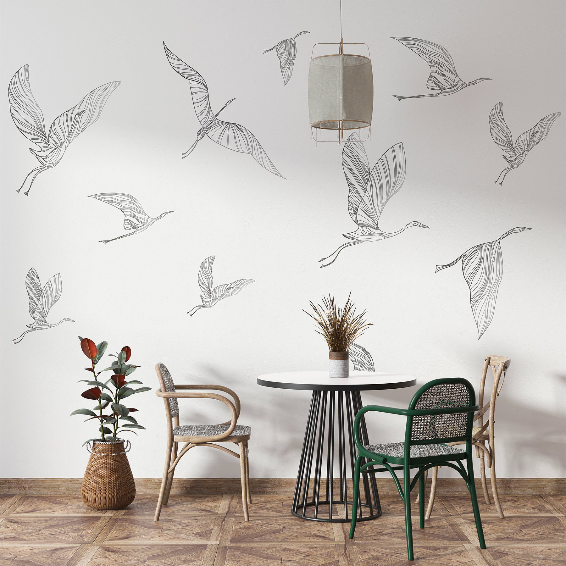Tem uma parede que precisa de um toque de elegância da natureza? Veja este mural, “Desenho de um Pássaro”. Não é um mural qualquer – é um toque artístico e suave do ar livre. Imagine entrar no seu quarto e ver estes pássaros graciosos, desenhados com linhas, a voar pela parede. Há algo de tão calmante nisso, certo? Como um sussurro de uma brisa ou o suave bater de asas.