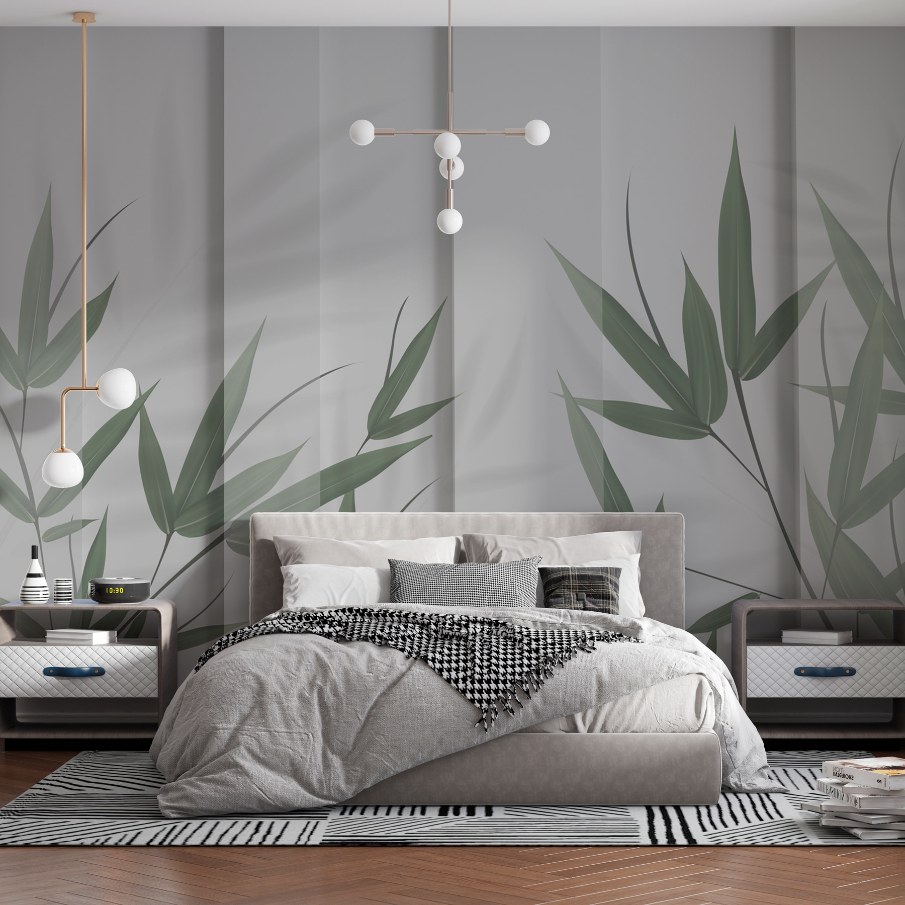 Entre num oásis sereno com este lindo mural “Green Leaves and Shadows”. Imagine folhas de bambu exuberantes a projetar suavemente sombras sobre um tecido macio – é como ter um jardim tranquilo mesmo no seu quarto. Isto não é apenas um mural; é um pedaço de tranquilidade. Perfeito para um canto zen, para o quarto ou para qualquer sítio onde precise de um pouco de terapia verde. O design contemporâneo integra-se perfeitamente em qualquer decoração, enquanto o efeito 3D acrescenta o toque certo de profundidade. Quase sentirá uma leve brisa a agitar as folhas. Respire com calma – o seu espaço acabou de ficar muito mais tranquilo!