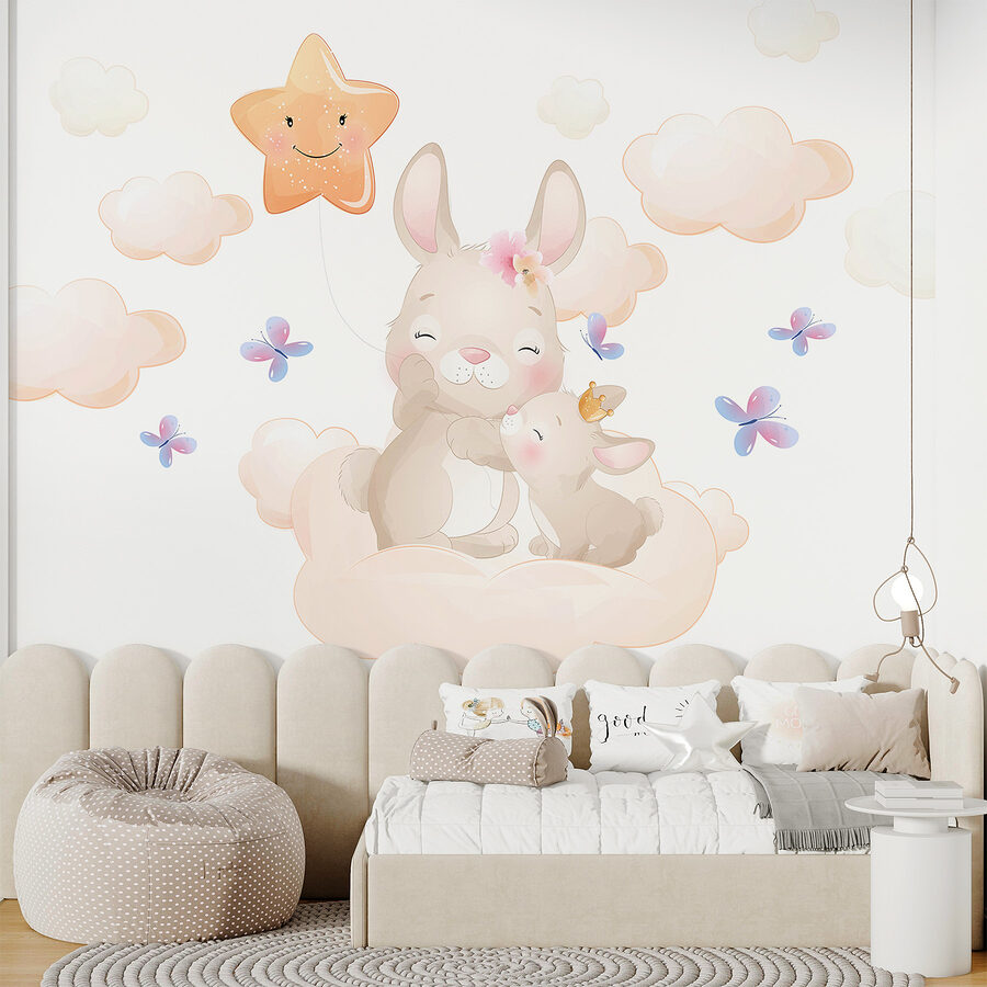 Imagine entrar numa sala onde coelhinhos caprichosos, nuvens de sonho e uma estrela feliz o cumprimentam com um sorriso gentil – pura magia, certo? Este mural de parede, “Cartoon of a Star”, traz uma pitada de poeira estelar e muito charme a qualquer espaço. As nuvens em tons pastel parecem quase fofas o suficiente para serem tocadas, e aquelas borboletas? Apenas a esvoaçar para dizer olá. É como entrar num conto de fadas, perfeito para infantários ou salas de jogos onde a imaginação floresce. As cores suaves e as personagens encantadoras fazem com que se sinta como um abraço suave nas paredes. Ideal para criar histórias para adormecer ou apenas para acrescentar um toque de maravilha ao seu quotidiano.