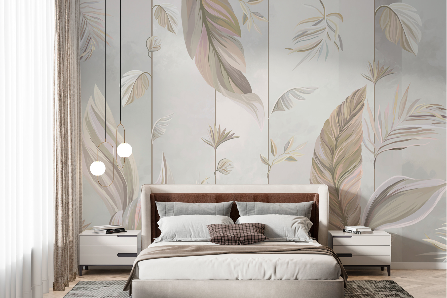 Transforme o seu espaço com o mural de parede “Elegant Leaves”! Imagine estar num jardim sereno sempre que entra na sala. Os tons pastel suaves são como um suave sussurro de cor, fazendo com que tudo pareça calmo e refrescado. É o tipo de mural que dá vontade de se sentar com um bom livro (e talvez uma chávena de chá).
