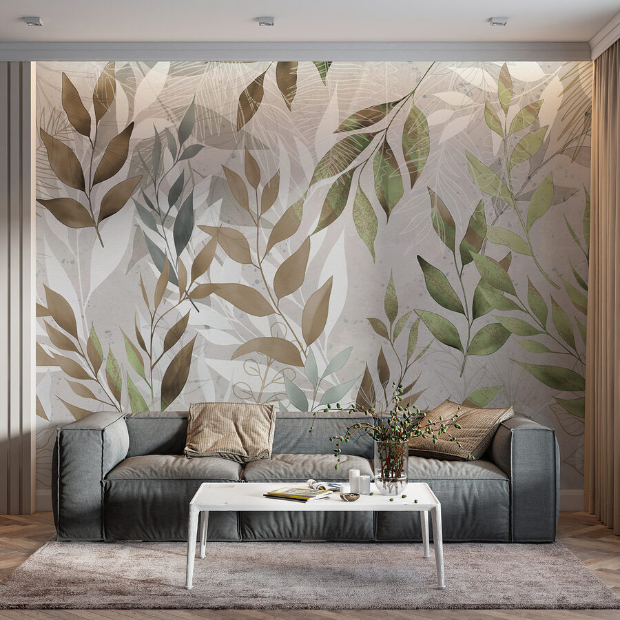 As cores são verdes e castanhos suaves mas vivos, misturados na perfeição para dar aquele aspeto fresco e sem esforço. Sempre que olhar para ela, poderá sentir-se um pouco mais relaxado, como se estivesse a tirar umas mini-férias. Ótimo para pessoas que adoram a beleza da natureza, mas nem sempre podem estar ao ar livre. Este mural não se limita a decorar, cria uma experiência – imagine manhãs aconchegantes com café, ou serões com música suave, rodeado por esta adorável obra de arte com folhas. Perfeito para sonhar.