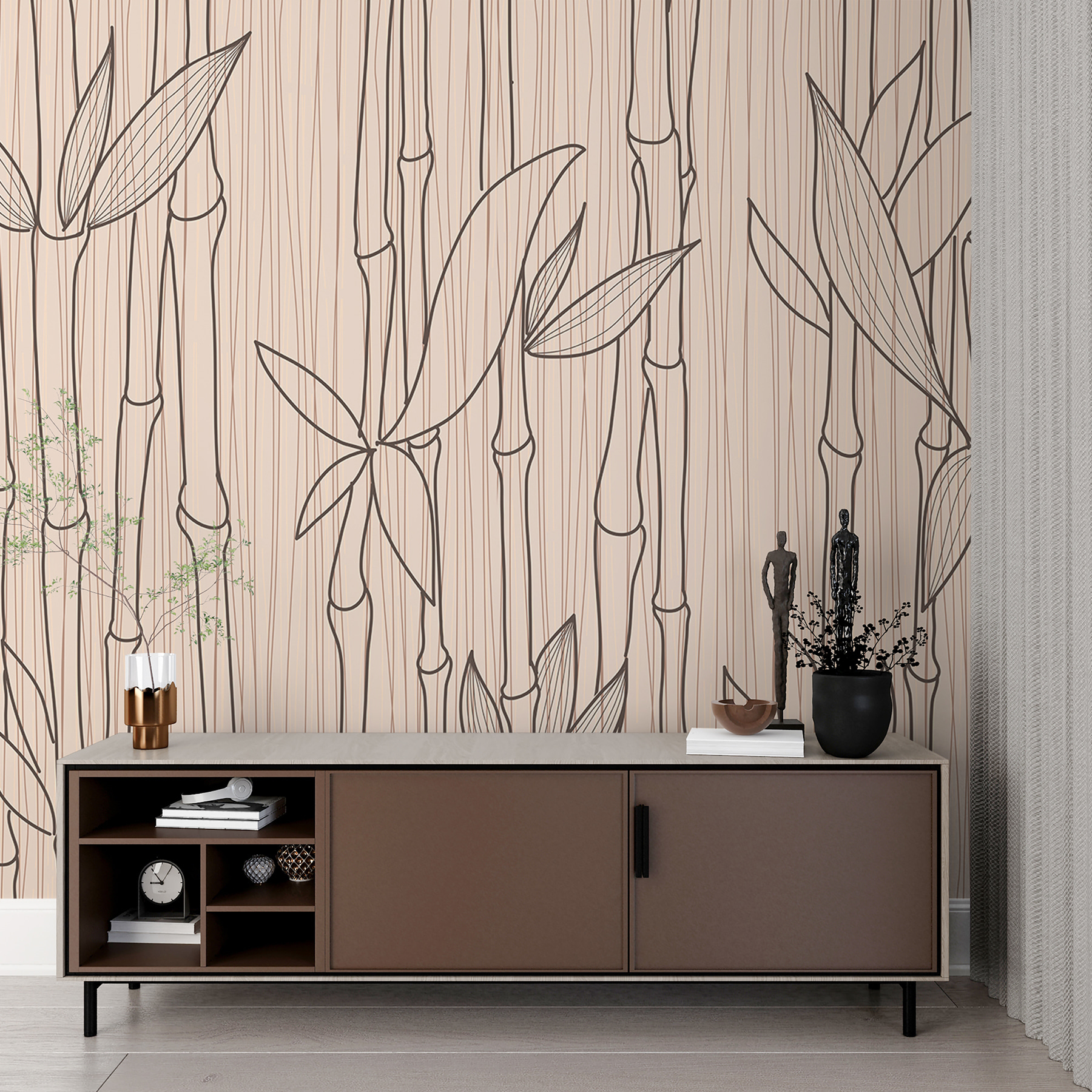Olá! Veja este mural de parede super fixe, “Bamboo Sketch Pattern on Beige Background”. É uma daquelas peças que pode transformar totalmente uma sala com as suas vibrações frias. Imagine bebericar o seu café da manhã rodeado por estes elegantes desenhos de bambu – há apenas algo de zen nisso. O fundo bege acrescenta este calor que, de alguma forma, faz com que todo o espaço se sinta acolhedor e sofisticado ao mesmo tempo.