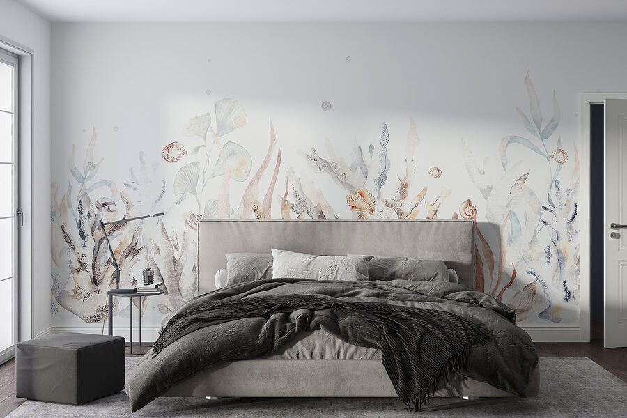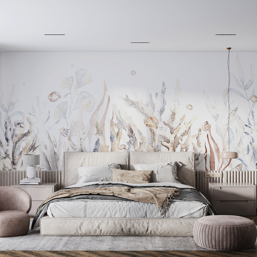 Imagine entrar no seu quarto e sentir-se como se tivesse acabado de entrar num paraíso subaquático encantador. O mural de parede “Underwater Garden with Shells and Fish” é como ter um pedaço do oceano mesmo em sua casa. Com cores serenas e detalhes delicados, tem esta vibração calmante que é perfeita para relaxar depois de um longo dia. Quase se pode sentir a brisa fresca do mar e ouvir as ondas suaves, não é?