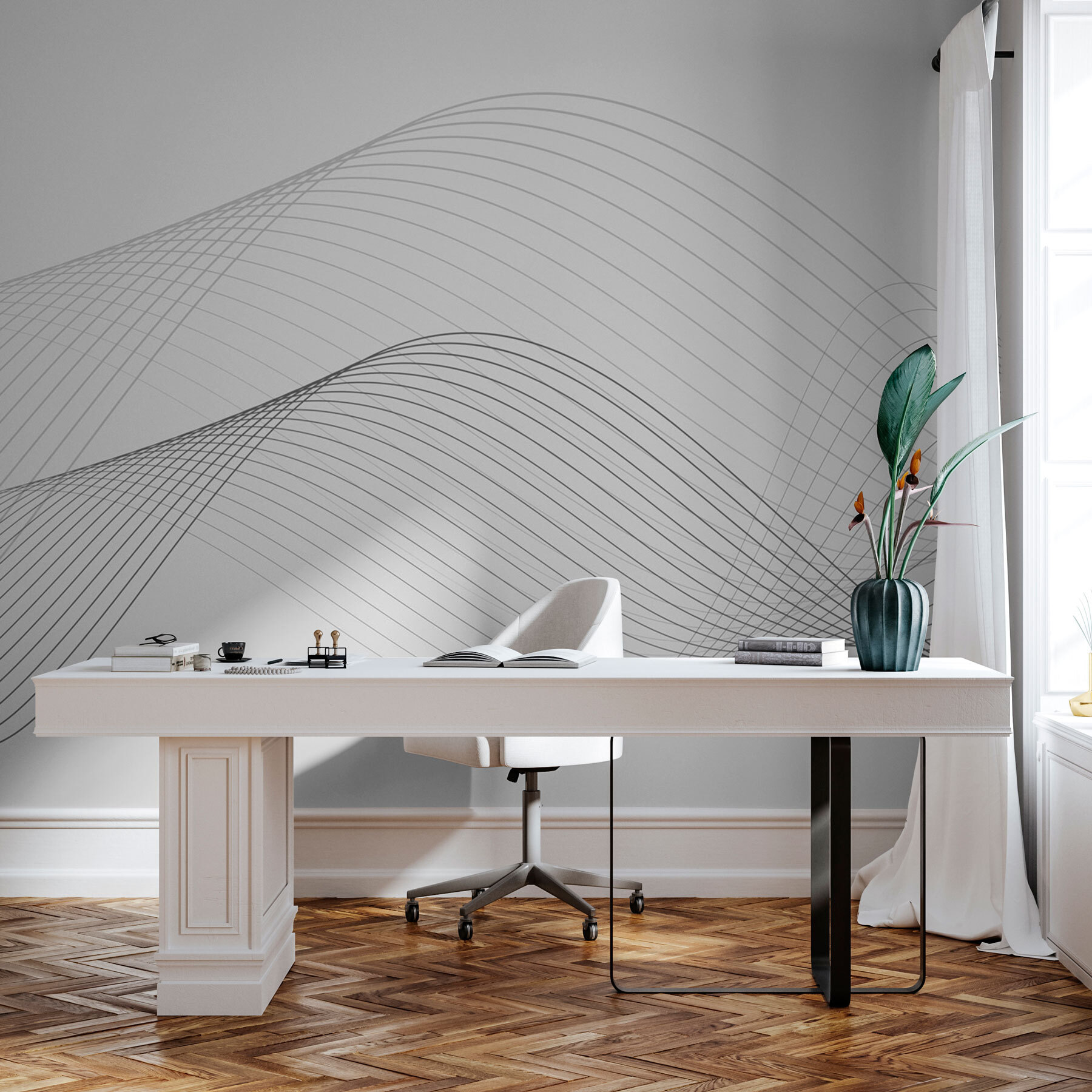 Imagine ter uma onda serena de linhas pretas e brancas a fluir pela sua parede. Este mural, com o seu design minimalista, dá um toque de elegância sem esforço a qualquer divisão. É como uma brisa suave numa praia, mas para as suas paredes! Quer goste de decoração contemporânea ou apenas queira agitar as coisas, este mural encaixa perfeitamente. Perfeito para aqueles momentos em que só precisa de uma pausa calma e visual. É como uma obra-prima moderna que não grita – sussurra, e toda a gente adora um bom sussurro, certo? Transforma paredes comuns em arte. Elegante, simples, deslumbrante.