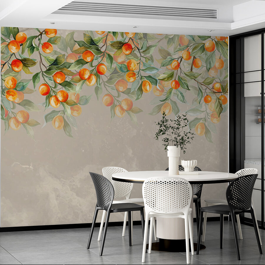Transforme o seu espaço com este encantador mural de parede, “Ramos de árvores de fruto com folhas”. Imagine entrar numa sala onde ramos vibrantes cheios de frutos sumarentos o cumprimentam, sussurrando uma sensação de serenidade e alegria. É como trazer uma fatia da natureza para dentro de casa – perfeito para cozinhas, salas de jantar ou qualquer recanto acolhedor que anseie por um toque de calor. As pessoas sentir-se-ão atraídas pelas cores suaves e pelo design caprichoso, criando um pano de fundo que estimula a conversa. Quer esteja a beber café ou a receber amigos, este mural acrescenta um toque de alegria que parece refrescantemente orgânico, tal como uma tarde de sol no pomar. Dê vida às paredes e convide essa vibração flutuante e terrena para casa.