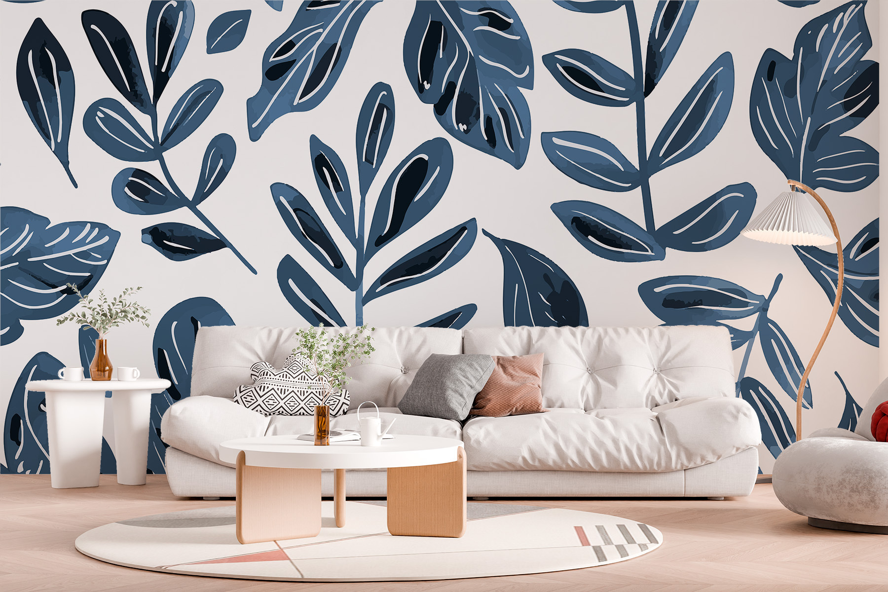 Este mural de parede – “Pattern of Blue Leaves” – é a solução ideal para embelezar o seu espaço. Imagine entrar numa sala e sentir-se como se tivesse tropeçado num sonho sereno e cheio de folhas. Tem este encanto contemporâneo e fixe que fará com que qualquer espaço se sinta um pouco mais vivo. Os tons azuis são como uma brisa calma num dia quente – pura felicidade. Perfeito para quem está cansado do mesmo de sempre, é como ter uma pequena fatia da natureza na parede. Ótimo para despertar a alegria e a conversa. Quem não gostaria de mergulhar nessas lindas folhas?