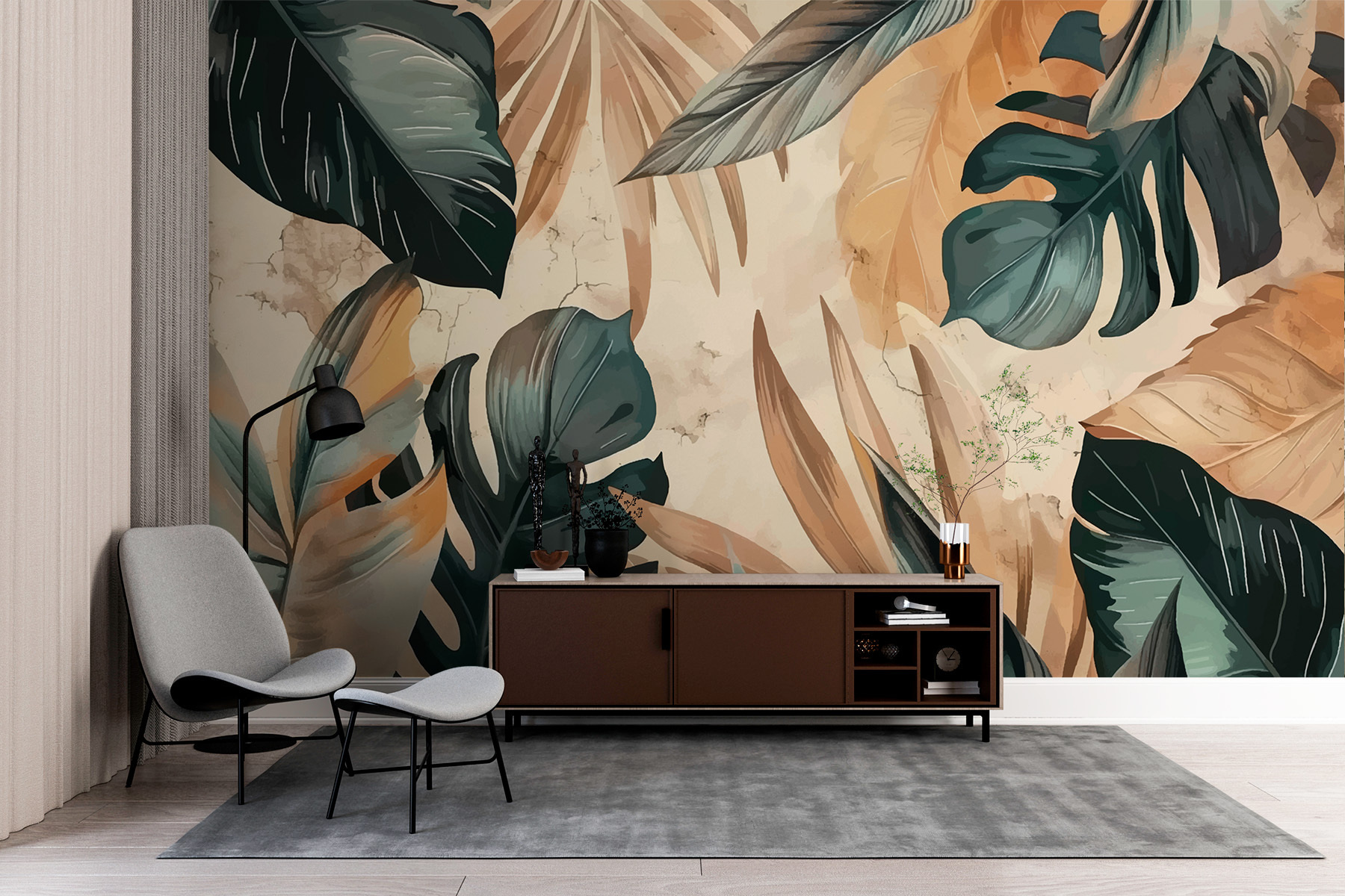 Olá! Imagine trazer a serenidade de um paraíso tropical diretamente para o seu espaço de vida – é isso que “Papel de parede w00998” faz. Esta impressão é uma dança exuberante de folhas de palmeira, tons de terra e visuais suaves que o fazem sentir como se estivesse numa cabana à beira-mar. Perfeito para quem quer dar um toque de natureza – ou apenas fingir que quer, porque regar as plantas é uma chatice!