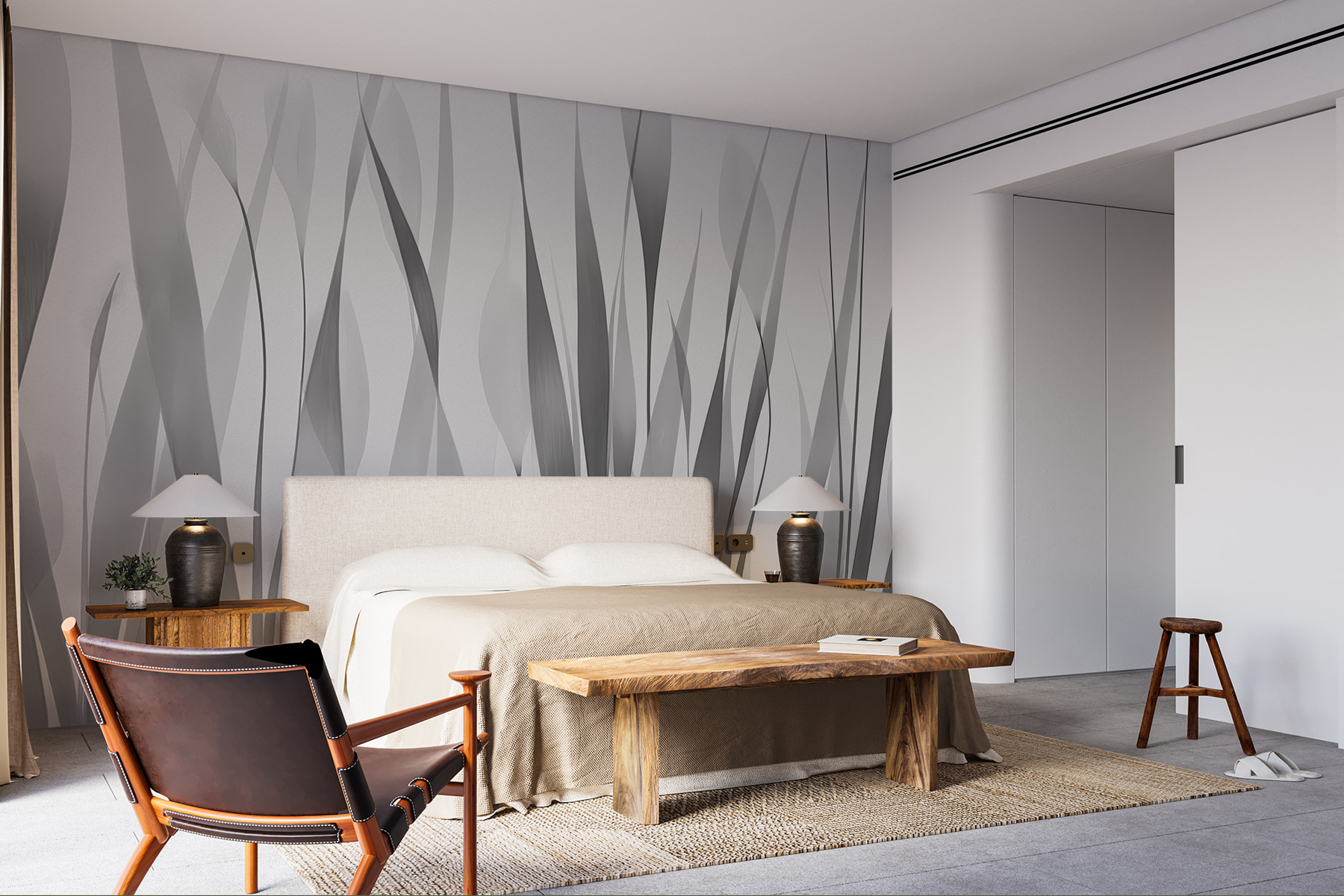 Transforme qualquer divisão com este deslumbrante mural de parede cinzento e branco com um conjunto sonhador de silhuetas de plantas. É como trazer uma lufada de ar fresco diretamente para o seu espaço. Imagine relaxar num recanto acolhedor, rodeado por estas formas suaves e elegantes que balançam com vibrações leves e seriamente calmantes. Quer se trate de uma sala de estar chique ou de um quarto tranquilo, este mural acrescenta um toque de arte moderna, mantendo as coisas calmas. Além disso, é um ótimo início de conversa. Os amigos vão certamente perguntar de onde é que é. Quem diria que a decoração poderia ser tão sofisticada sem esforço?