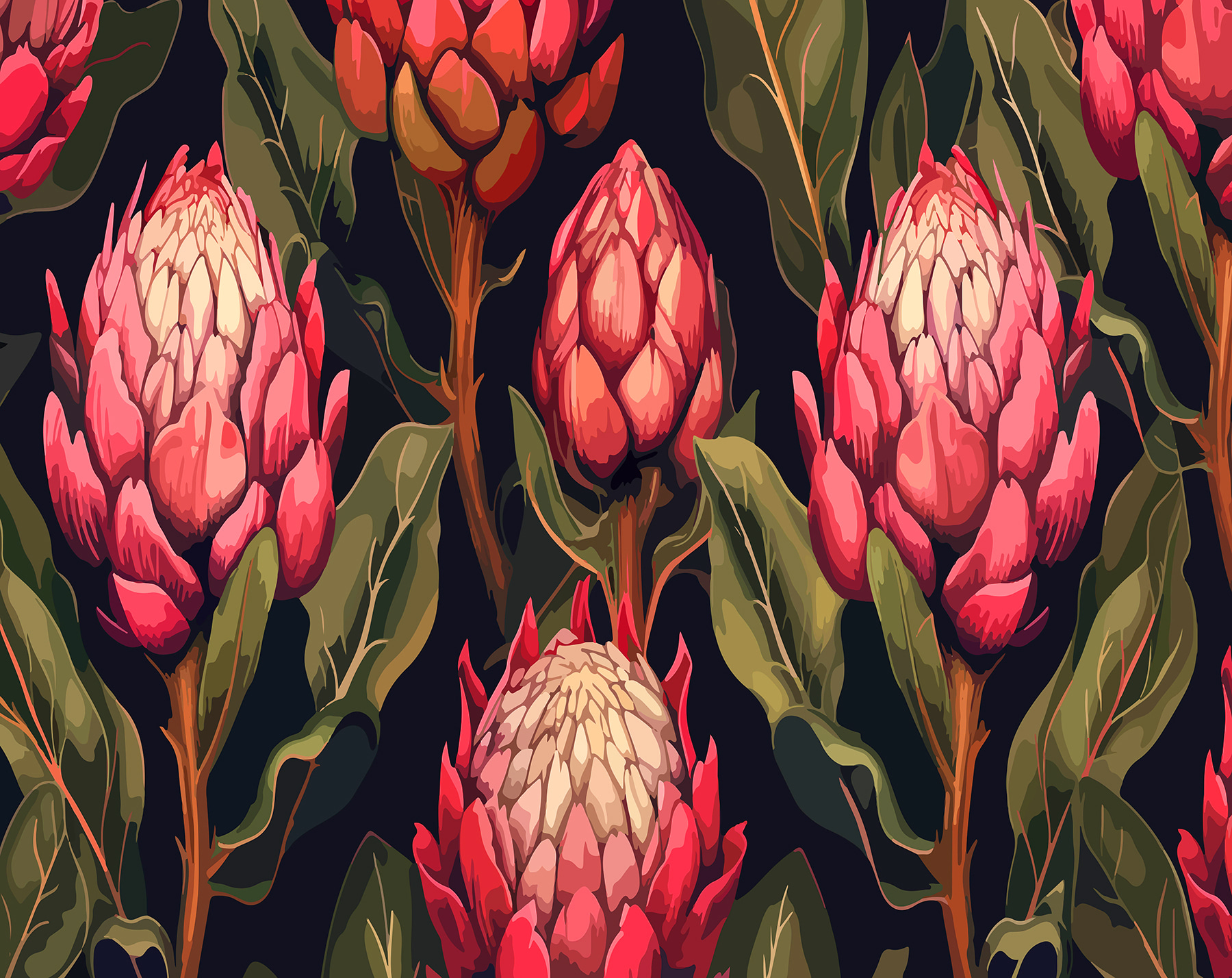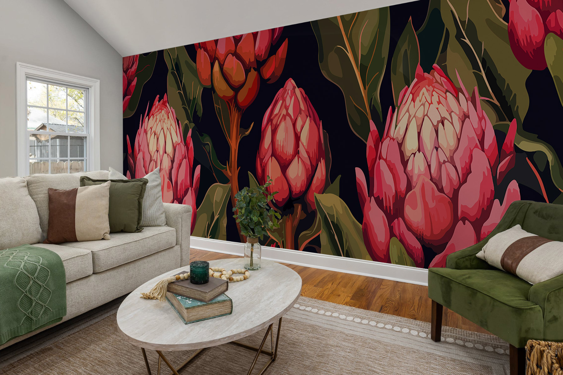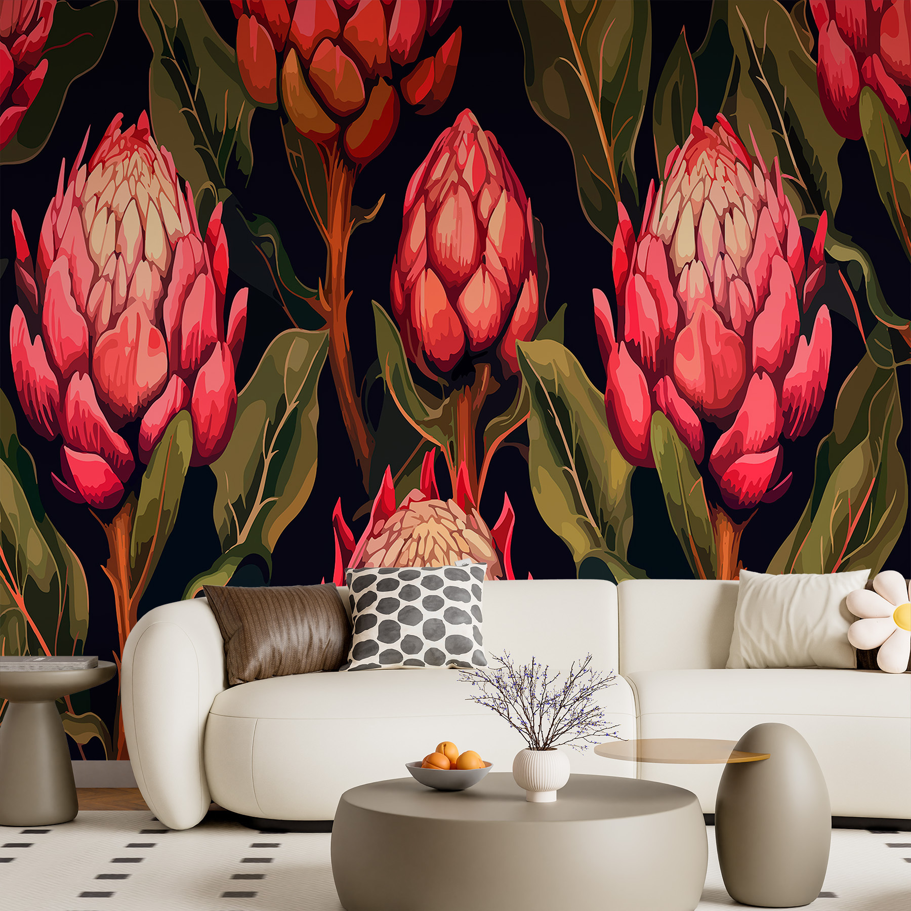 Transforme qualquer parede num oásis vibrante com o mural Blooming Proteas. Imagine isto: uma explosão de cores vivas e desenhos de flores impressionantes que praticamente dançam no seu espaço. É como trazer um pequeno pedaço da natureza para dentro de casa, sem o regador ou as incómodas alergias ao pólen. Este mural não fica apenas ali sentado – ele suscita conversas e melhora o estado de espírito. Imagine serões acolhedores, amigos a admirar a beleza, ou manhãs tranquilas passadas a beber café, sentindo-se como se estivesse rodeado por um jardim exuberante. Quer seja numa sala de estar ou num recanto acolhedor, este mural convida ao calor e à alegria. Perfeito para qualquer sítio que precise de um toque de personalidade!