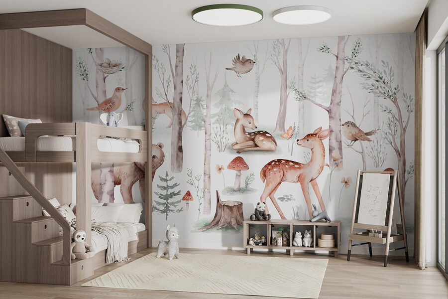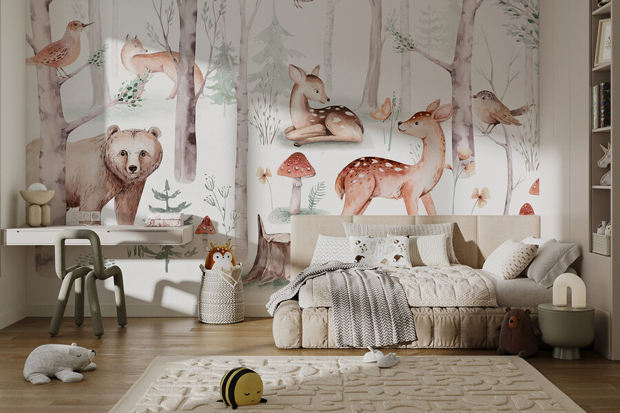 Mergulhe num bosque caprichoso com este mural encantador. Imagine ter um recanto florestal acolhedor no seu próprio espaço – completo com veados simpáticos, raposas curiosas e pássaros a cantar suavemente. É como uma cena suave de um livro de histórias espalhada pela sua parede! Perfeito para os amantes da natureza ou para quem precisa de uma fuga instantânea. Imagine-se a beber chá, com um livro na mão, enquanto este cenário sereno o convida a relaxar. Quem diria que a arte de parede poderia ser tão… pacífica? Transforme o seu quarto num retiro relaxante onde a floresta está sempre em flor.