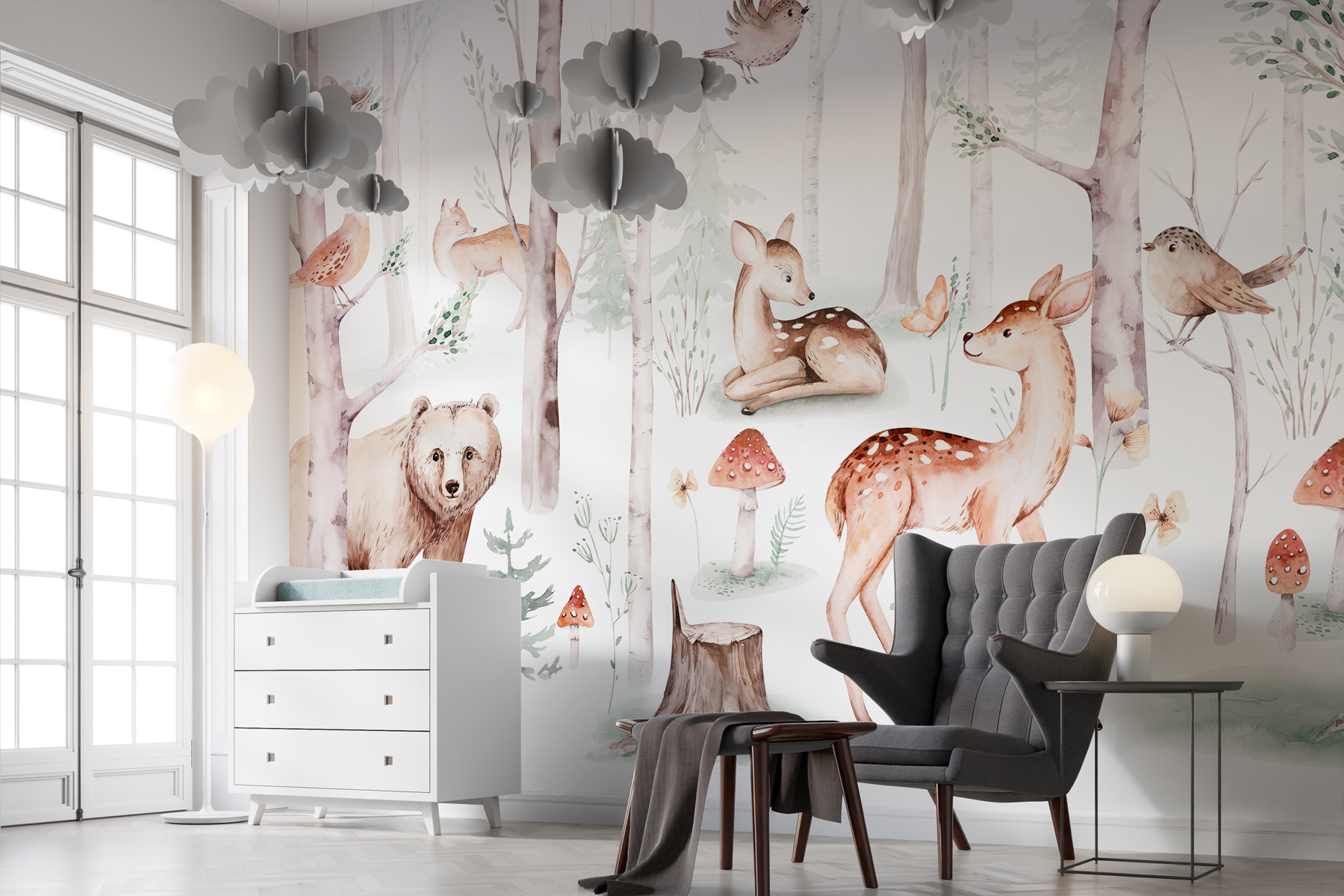 Mergulhe num bosque caprichoso com este mural encantador. Imagine ter um recanto florestal acolhedor no seu próprio espaço – completo com veados simpáticos, raposas curiosas e pássaros a cantar suavemente. É como uma cena suave de um livro de histórias espalhada pela sua parede! Perfeito para os amantes da natureza ou para quem precisa de uma fuga instantânea. Imagine-se a beber chá, com um livro na mão, enquanto este cenário sereno o convida a relaxar. Quem diria que a arte de parede poderia ser tão… pacífica? Transforme o seu quarto num retiro relaxante onde a floresta está sempre em flor.