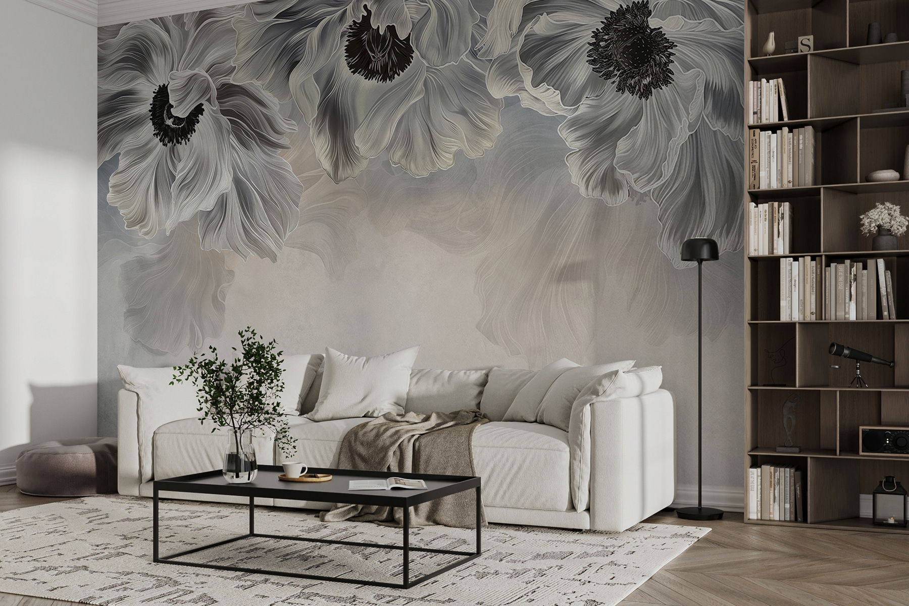 Imagine entrar num jardim sereno, onde suaves sussurros florais o cumprimentam a cada esquina. O mural Ethereal Floral Grayscape é como trazer um sopro da natureza para dentro de casa, com tons suavemente ondulantes e elegantes desenhos de flores que dançam nas suas paredes. Não se trata apenas de decoração; é um ambiente. Imagine reuniões acolhedoras em que os amigos se maravilham com a beleza sem esforço que os rodeia, ou manhãs tranquilas a beber café enquanto a luz do sol reflecte os padrões delicados. Este mural acrescenta um ar de calma e sofisticação a qualquer divisão, transformando-a numa deliciosa fuga sem dizer uma palavra. As suas paredes vão agradecer-lhe por esta atualização deslumbrante, transformando os momentos do dia a dia em algo um pouco mais especial. Porque não deixar o seu espaço florescer?