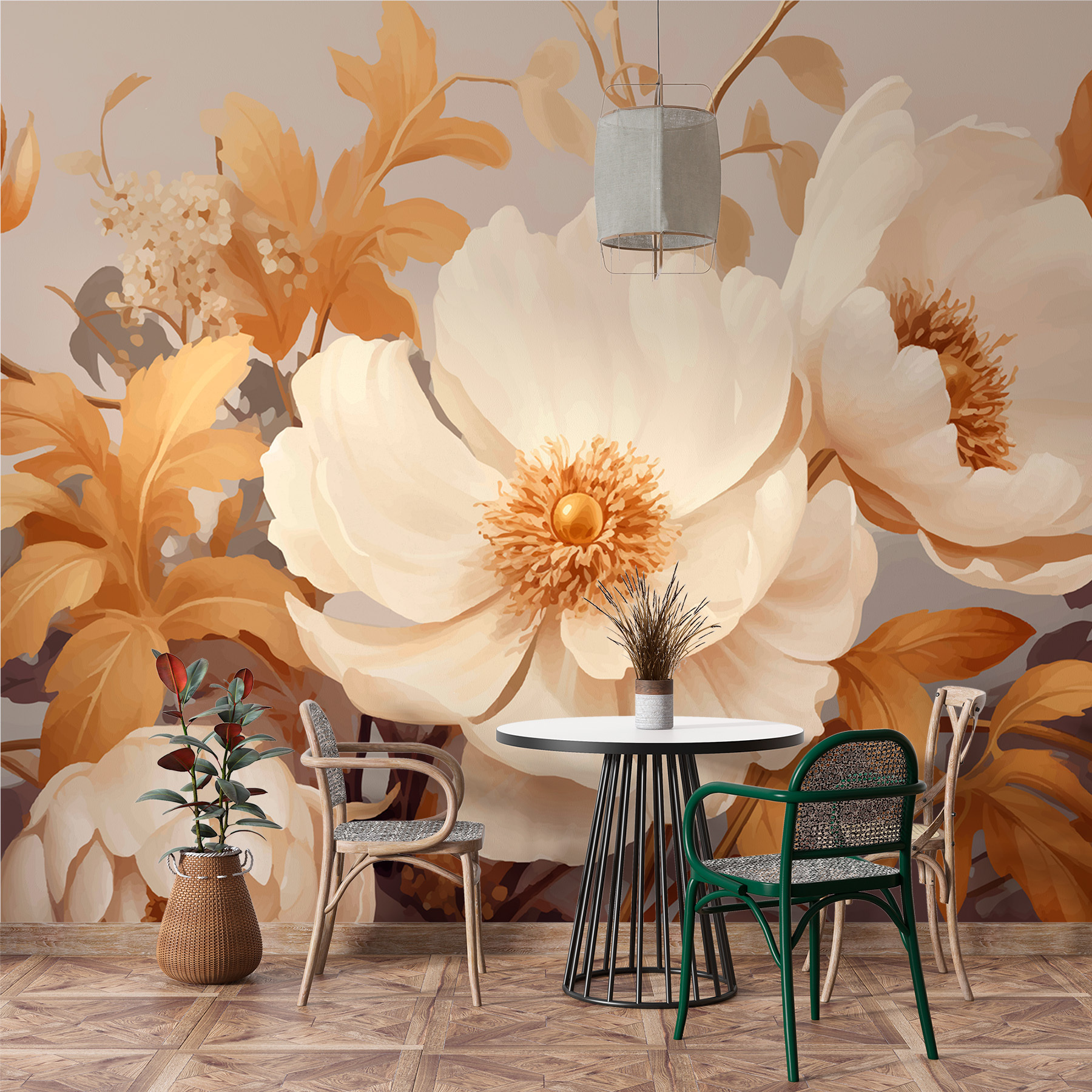 “Papel de parede Creamy Blossoms in Serene Harmony” é como um abraço suave para as suas paredes. Imagine entrar numa divisão e sentir o suave sussurro de uma brisa de jardim. Estas flores delicadas, com uma paleta cremosa, trazem um toque de tranquilidade que fará com que o stress desapareça mais depressa do que as meias perdidas numa máquina de secar. Perfeitas para quem quer dar um toque de natureza sem precisar de regar – transformam qualquer espaço num retiro calmante. Quer sonhar um pouco acordado? Este mural tem tudo o que precisa.