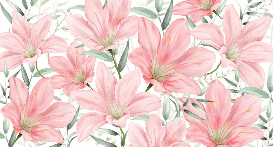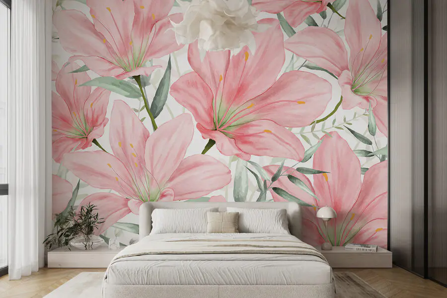 Imagine entrar numa sala onde cada parede sussurra um suave olá com lírios em flor, suavemente cor-de-rosa e elegantemente posicionados. Este mural – chamemos-lhe o ladrão de cena – traz um pouco da natureza para o interior, com um toque de conto de fadas. É como dar uma festa no jardim sem se preocupar com o tempo! Perfeito para quem gosta de uma mistura de arte e natureza, parece um abraço pessoal da própria Mãe Natureza. Os convidados podem até perguntar onde arranjou essa “obra de arte” deslumbrante – e você pode apenas sorrir, acenar com a cabeça com conhecimento de causa e deixar os lírios falarem.