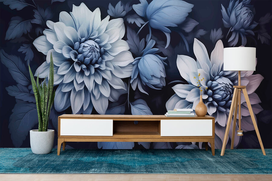 Transforme o seu espaço com “Murais de parede Midnight Blossoms em monocromático”. Este design deslumbrante dá um toque de elegância com os seus azuis profundos e cinzentos suaves, fazendo com que se sinta como se estivesse a caminhar por um jardim de sonho ao crepúsculo. Imagine-se a bebericar o seu café enquanto olha para estas flores encantadoras, cada pétala a sussurrar segredos de serenidade. Perfeito para qualquer divisão, eleva o ambiente sem o dominar. É como ter a poesia da natureza mesmo na parede, inspirando devaneios e momentos de aconchego. Quem diria que as flores podiam ser tão chiques e convidativas?