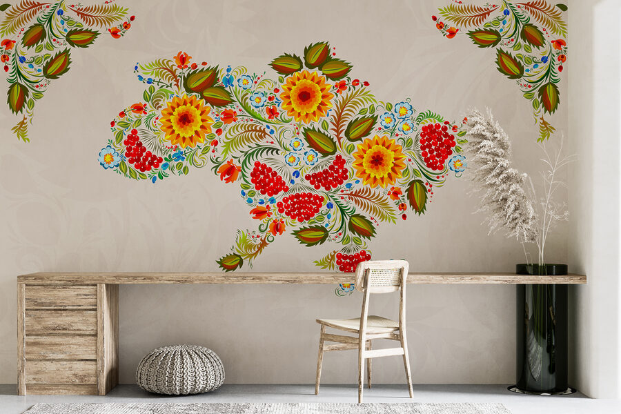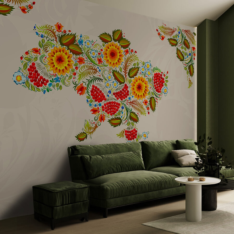 Olá, entusiasta da decoração! Conheça este deslumbrante mural de parede – é um mapa da Ucrânia, mas troque essas linhas aborrecidas por flores arrojadas e florescentes. Imagine o seu quarto infundido com uma explosão de cor, como se um jardim tivesse acabado de entrar. Aqueles amarelos e vermelhos ricos, com verdes vibrantes – pura alegria! É como ter uma peça de arte que sussurra histórias de tradição e cultura. Quem não gostaria de começar cada dia com a sensação de estar a entrar numa festa? Perfeito para quem deseja um pouco mais de beleza e carácter no seu espaço.