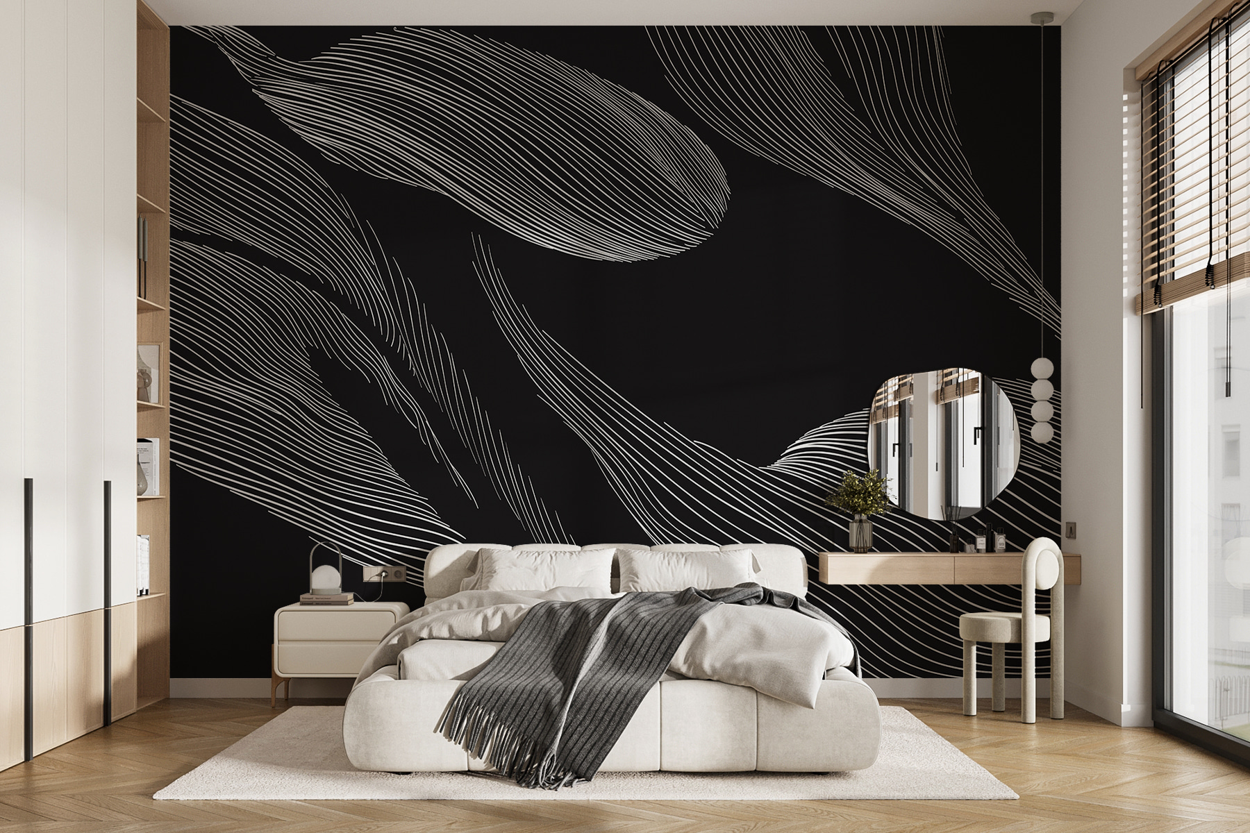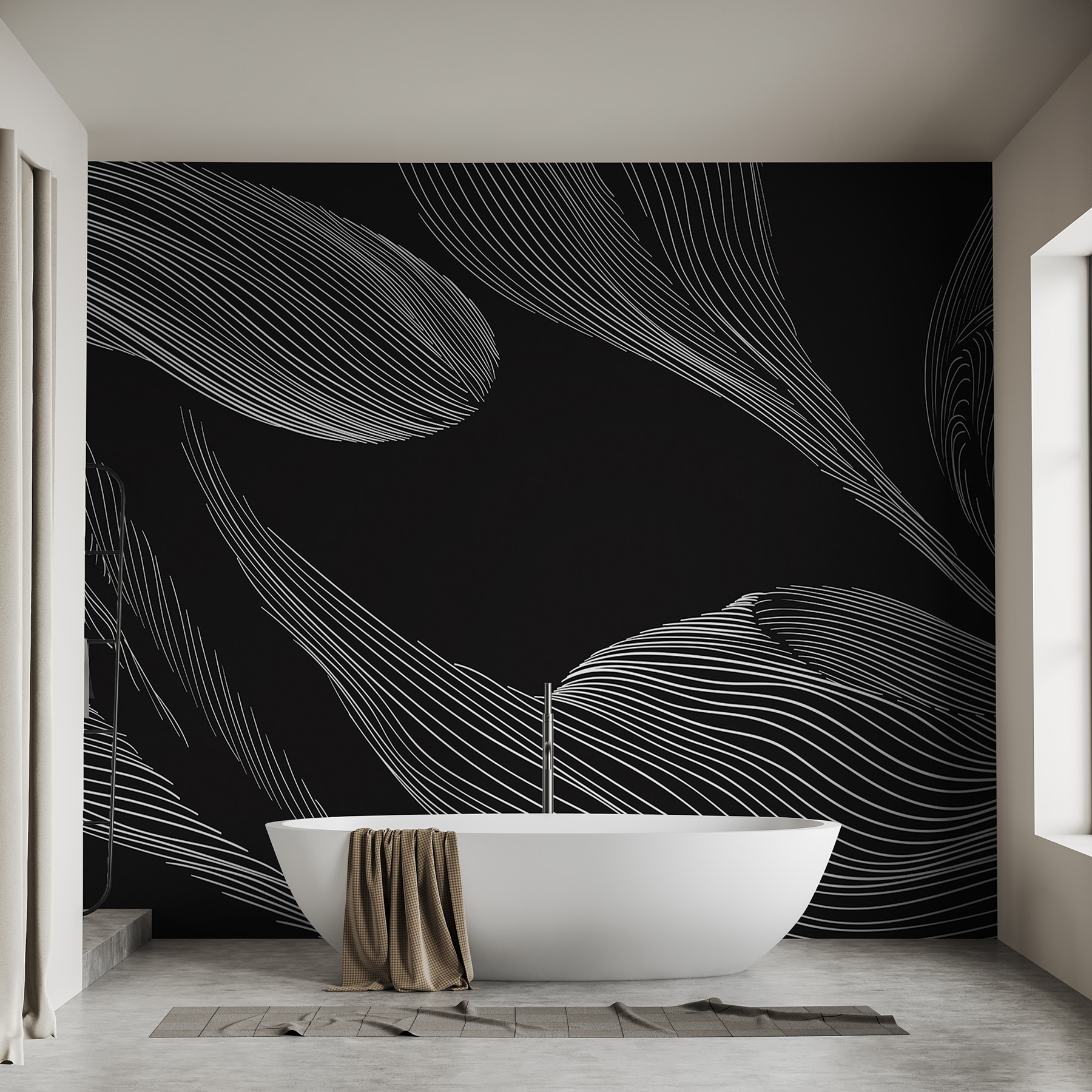 Transforme o seu espaço com este deslumbrante mural de folhas a preto e branco que dança através da parede. É como trazer a natureza para dentro de casa, sem os insectos – pontos de bónus! As linhas fluidas oferecem uma sensação de movimento, lembrando-lhe uma brisa suave a passar pelas folhas. Perfeita para um recanto de leitura acolhedor ou para uma sala de estar moderna, é certo que vai suscitar conversas e talvez até um pouco de devaneio. Imagine-se a enrolar-se com uma chávena de chá, rodeado pelas vibrações calmantes desta obra de arte. Quem diria que um mural poderia transformar uma parede num ambiente completo?