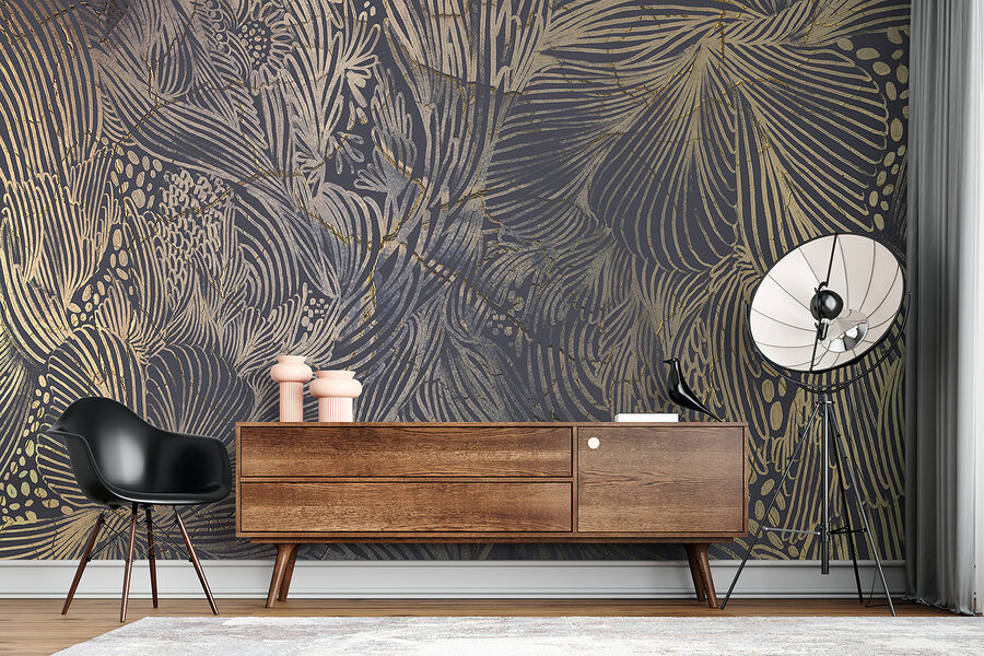 Transforme uma parede simples num ponto focal deslumbrante com este elegante mural botânico em tons escuros. Imagine entrar num espaço onde desenhos intrincados e folhosos envolvem a sua divisão, infundindo-lhe um toque de sofisticação da natureza. É como trazer a floresta para o interior – menos os insectos, claro. As cores ricas criam um ambiente acolhedor, perfeito para se enrolar com um livro ou receber amigos. Além disso, os padrões fluidos acrescentam um pouco de drama, fazendo com que cada olhar pareça uma mini-fuga. Quem não gostaria de ter uma dose diária de felicidade botânica mesmo em casa?
