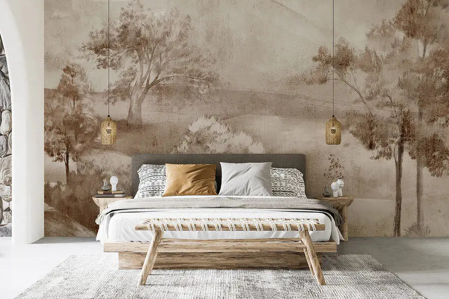 Olá! Alguma vez quiseste trazer um pouco da magia de uma paisagem de sonho para a tua sala de estar ou quarto? Veja o “Mural de parede Paisagem com árvores e arbustos”. É uma bela mistura de cores suaves e tons de terra, fazendo com que qualquer espaço se sinta um pouco mais sereno. Como uma suave pintura a aguarela, este mural capta uma cena exuberante com árvores e arbustos, quase como se estivesse a olhar para um prado tranquilo.