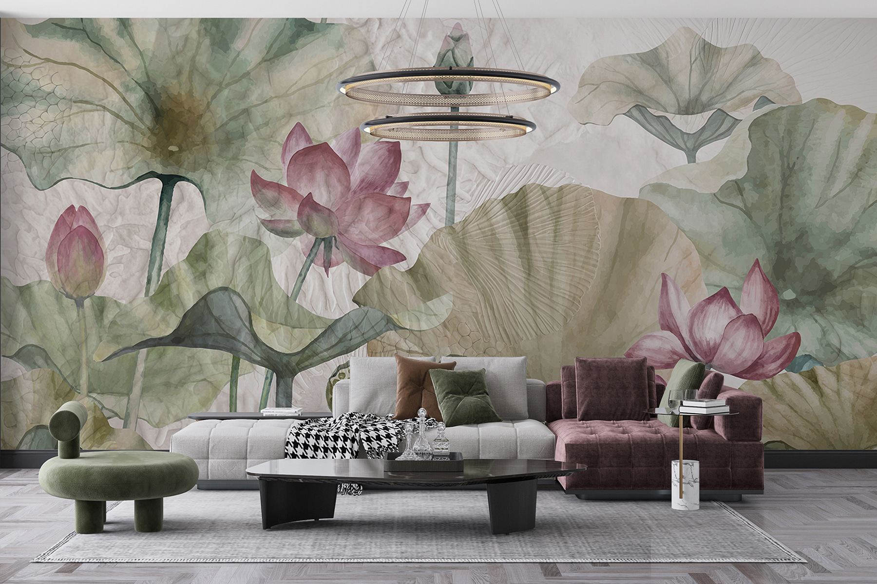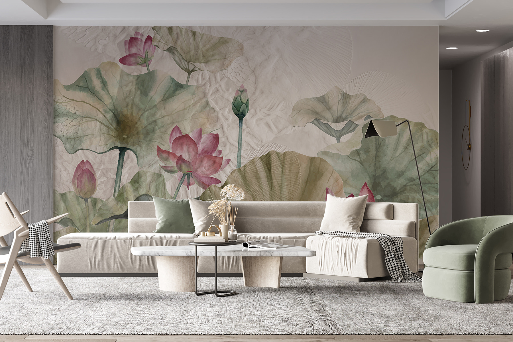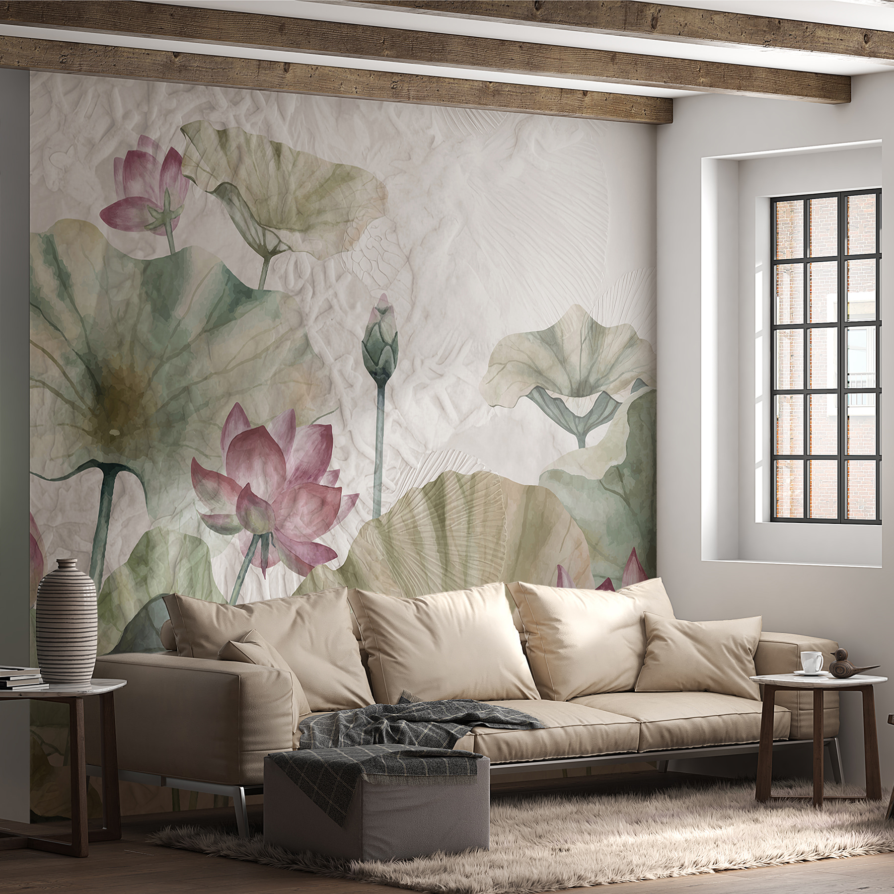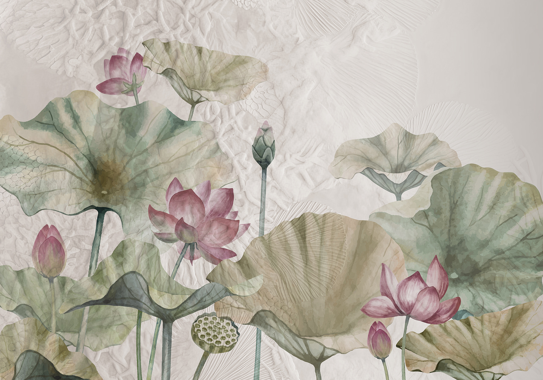 Transforme o seu espaço com o mural “Lotus Blossoms and Leaves” – é como trazer um jardim sereno diretamente para a sua casa. Imagine-se a relaxar na sua cadeira favorita, a beber chá, enquanto estas flores suaves o espreitam da parede. Os tons suaves de rosa e verde criam uma atmosfera calma, perfeita para um recanto de leitura acolhedor ou um quarto tranquilo. Cada pétala parece estar a sussurrar segredos da natureza. É uma forma fantástica de dar um toque de vida sem sobrecarregar os sentidos. As suas paredes parecerão um pouco mais como um retiro tranquilo e muito menos como, bem, apenas paredes. Quem diria que a decoração poderia fazer maravilhas como esta?