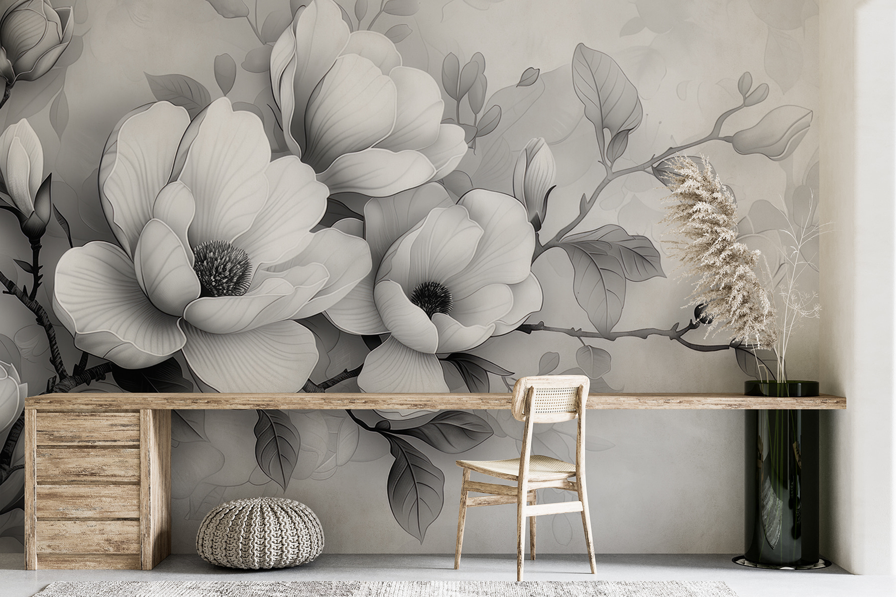 Transforme qualquer espaço com este deslumbrante mural de parede, “Monochrome Bloom in Serene Elegance”. Imagine uma manhã tranquila, com luz a entrar e estas delicadas flores a enfeitar suavemente a sua parede. O design arrojado, mas suave, equilibra sem esforço a sofisticação com a beleza da natureza. É como convidar um jardim calmo para a sua casa, perfeito para sonhar acordado ou para conversas aconchegantes. Quer se trate de uma sala de estar chique ou de um canto tranquilo num quarto, este mural sussurra elegância sem gritar. É um toque encantador que nos faz parar, respirar e apreciar a arte da simplicidade. Imagine-se a bebericar um café nas proximidades, sentindo a vibração serena a tomar conta de si.