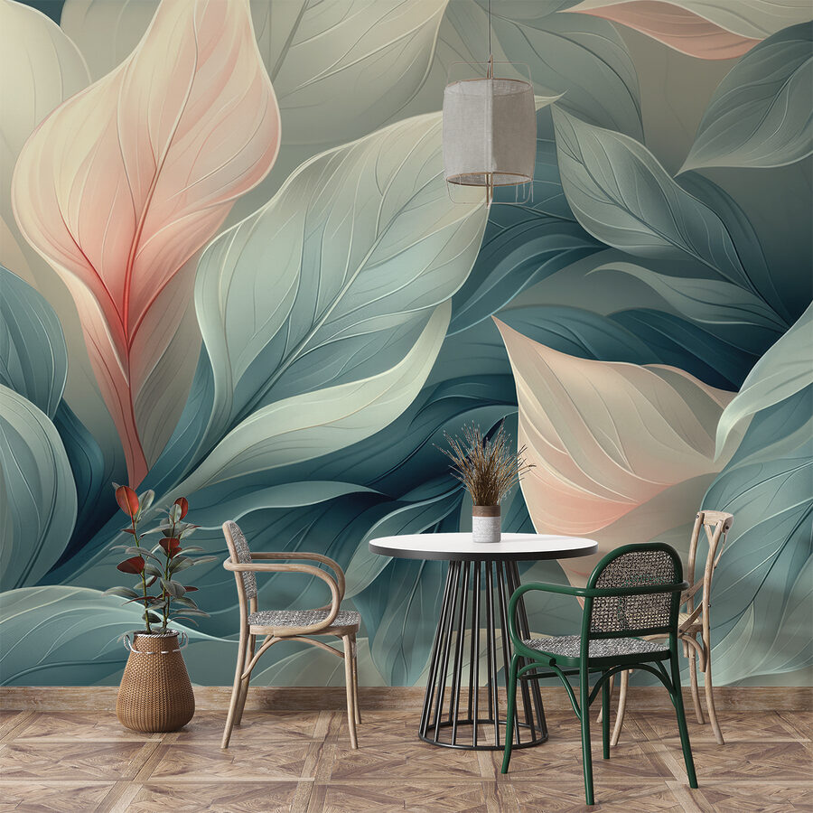 Transforme qualquer espaço num oásis sereno com o mural Ethereal Leaves. Este design envolve as paredes em tons pastel suaves e folhagem de sonho, criando uma vibração pacífica que parece um abraço suave. Imagine beber chá enquanto descansa numa sala que sussurra tranquilidade. É perfeito para descontrair após um longo dia ou para criar um ambiente acolhedor numa tarde de chuva. As folhas delicadas dançam na parede, convidando a natureza a entrar. É como trazer uma pequena fatia de um jardim sereno para a sua casa – sem necessidade de ter um polegar verde! Perfeito para salas de estar, quartos ou qualquer recanto que precise de uma pitada de calma.