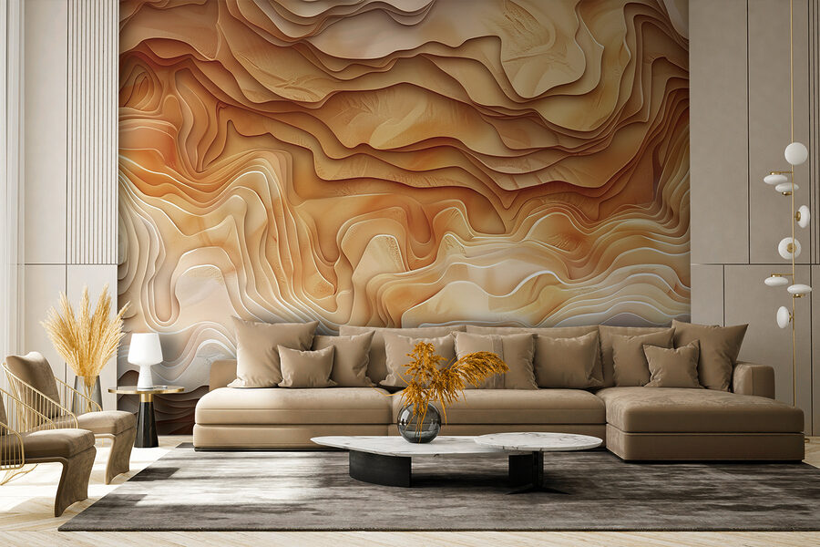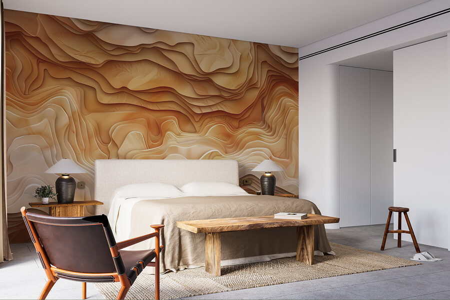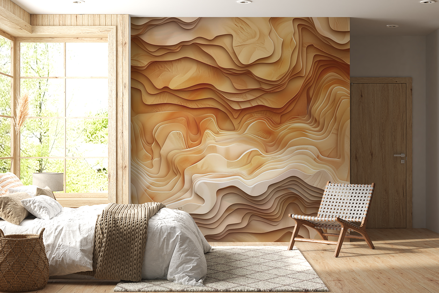 Transforme as suas paredes com a beleza das camadas da Terra, captada neste mural com ondas abstractas em tons quentes e terrosos. Imagine entrar num ambiente sereno que parece natural e convidativo – perfeito para um recanto de leitura acolhedor ou uma sala de estar animada. Este design acrescenta profundidade sem sobrecarregar os sentidos. É como trazer um pedaço da natureza para dentro de casa. Os amigos vão admirá-lo e talvez até perguntem se se tornou secretamente num designer de interiores. Porque não deixar o seu espaço contar uma história? Está na altura de dizer adeus às paredes aborrecidas e olá a um ambiente que parece ter sido criado só para si.