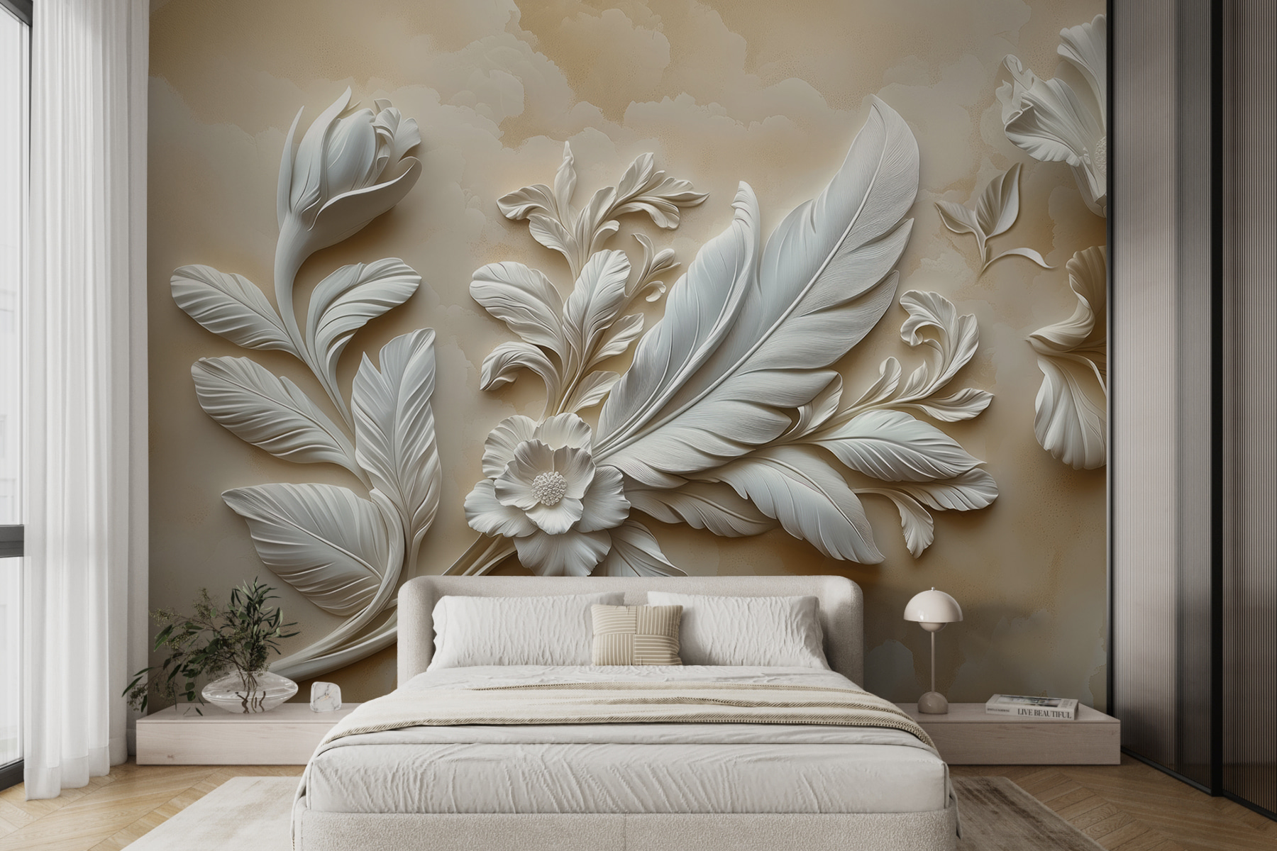 Transforme o seu espaço com este deslumbrante mural de parede com um elegante design floral branco. Imagine entrar numa sala onde pétalas suaves e folhas graciosas o envolvem – como um jardim secreto, só que melhor porque está dentro de casa. É perfeito para dar um toque de serenidade e frescura a qualquer área, quer seja uma sala de estar acolhedora ou um quarto calmo. Os pormenores delicados convidam o olhar a explorar, provocando devaneios sobre passeios ensolarados pela natureza. Só o facto de o imaginar faz-nos sentir mais à vontade. Além disso, é uma forma tão simples de deixar que as suas paredes falem por si!